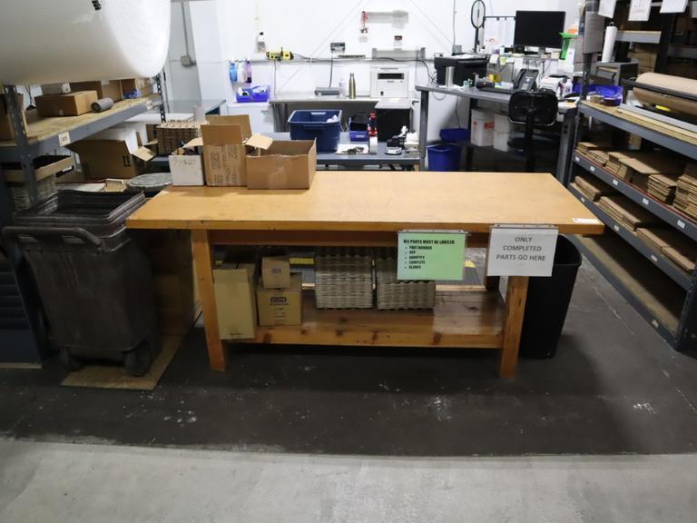 Haevy Wood Table with Lower Shelf 80" x 32" x 34" -NO CONTENTS- Auction Item