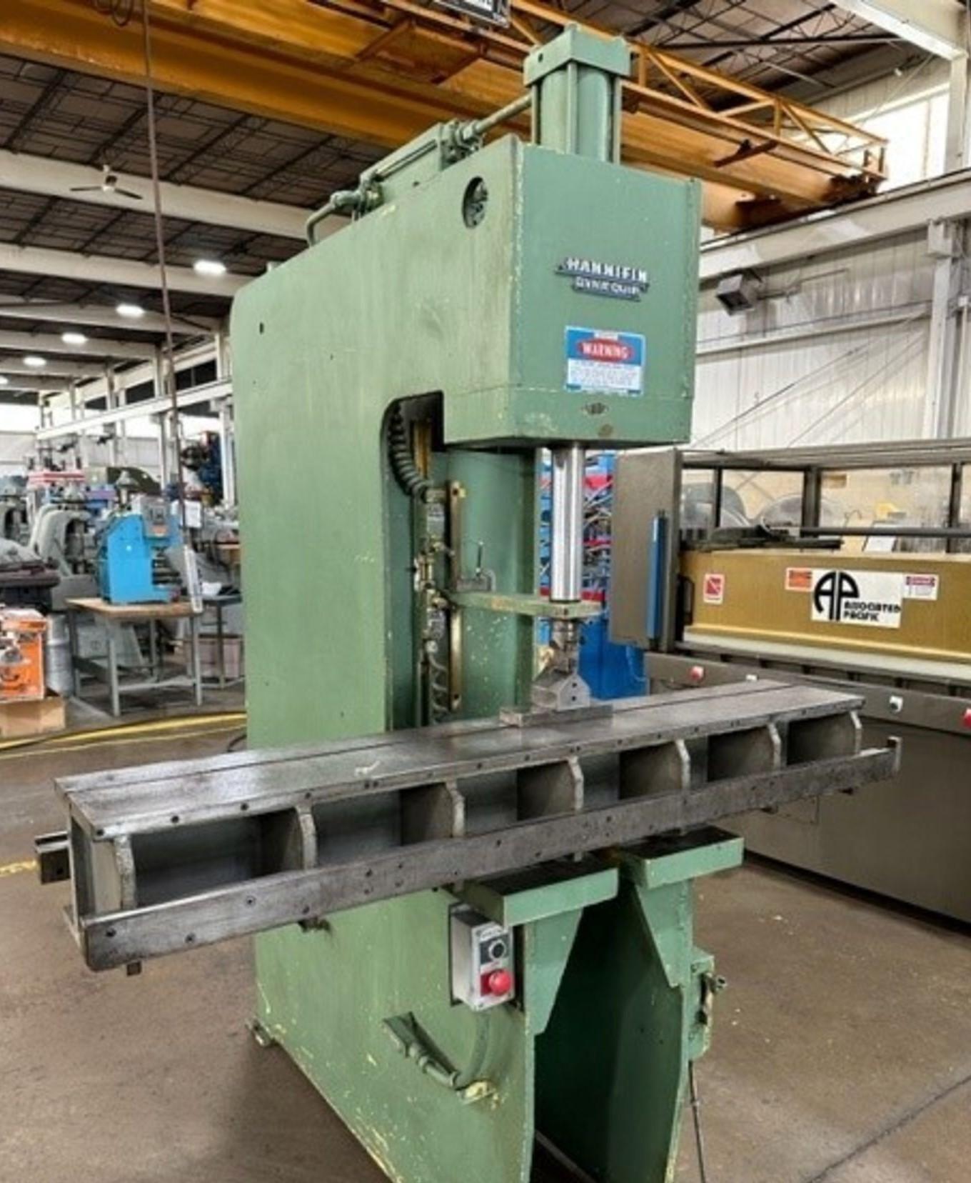 MODEL ............................................... OGF-12D TYPE ................................................ FLOOR STANDING AREA OF STRAIGHTENING BED ........................... 22" L-R x 21.5" F-B STRAIGHTENING BED ................................... 62" L-R x 10" F-B x 9" THICK (REMOVABLE) STROKE (APPROX) ..................................... 0 - 18" MAX DAYLIGHT OPENING (APPROX) ........................... 24" MAX DAYLIGHT OPENING (OVER STRAIGHTENING BED)(APPROX).... 15" MAX THROAT DEPTH ........................................ 14" RAM DIAMETER ........................................ 4"/2.5" @ 1910 PSI - 12 tons FLOOR TO TOP OF BED ................................. 36" VICKERS HYDRAULIC PUMP POWER UNIT: MOTOR ............................................... 5HP/1150RPM/230/460V/3PH/60CY SPEEDS (APPROX): MINUTE CLOSING & PRESSING TO 12 TONS ................. 90" MINUTE RETURN ........................................ 150" PUSHBUTTON CONTROLS: STROKE & PRESSURE CONTROL OPERATOR ................... YES HAND/FOOT PEDAL ...................................... YES PRESSURE GAUGE ....................................... YES |
