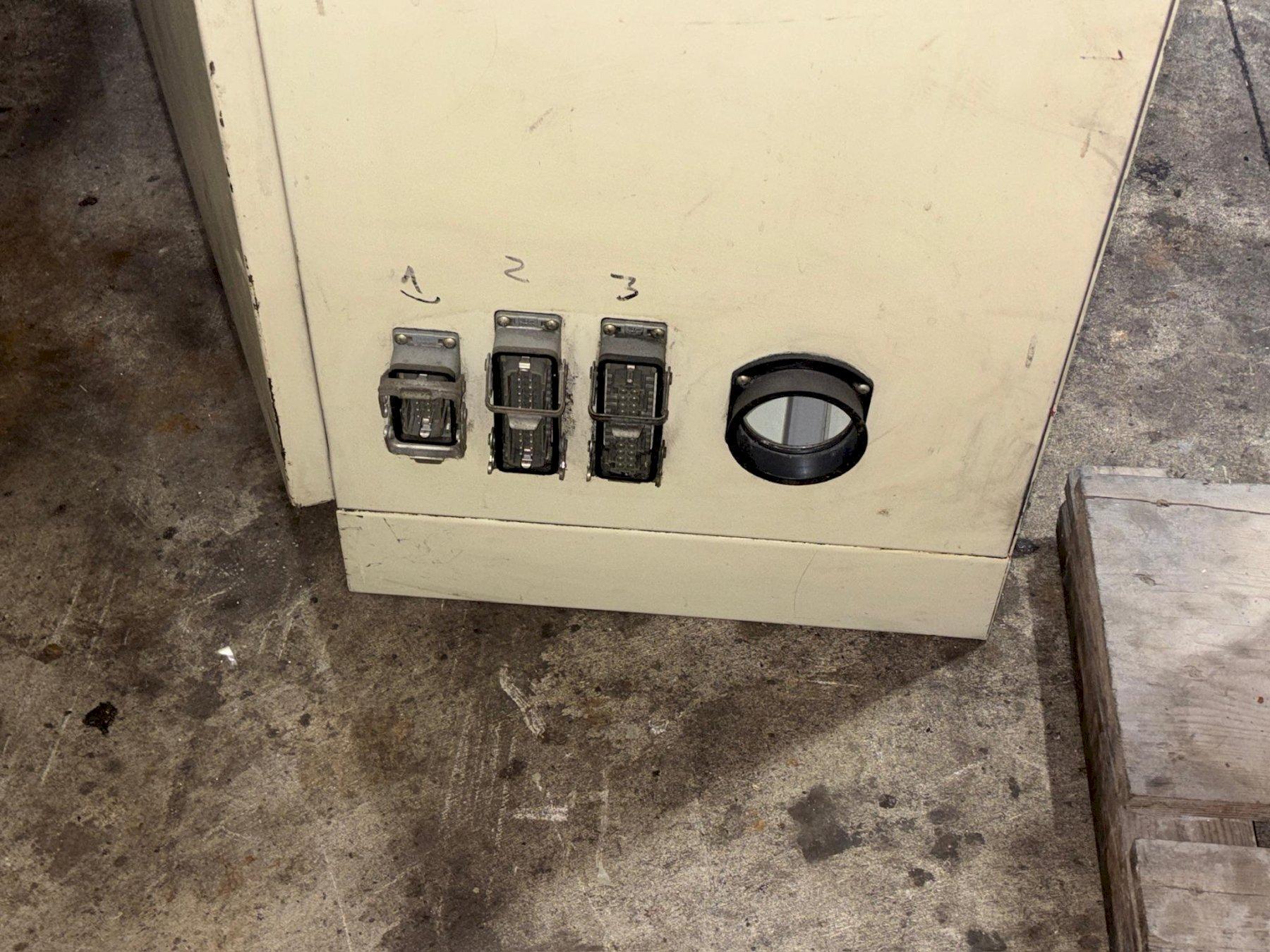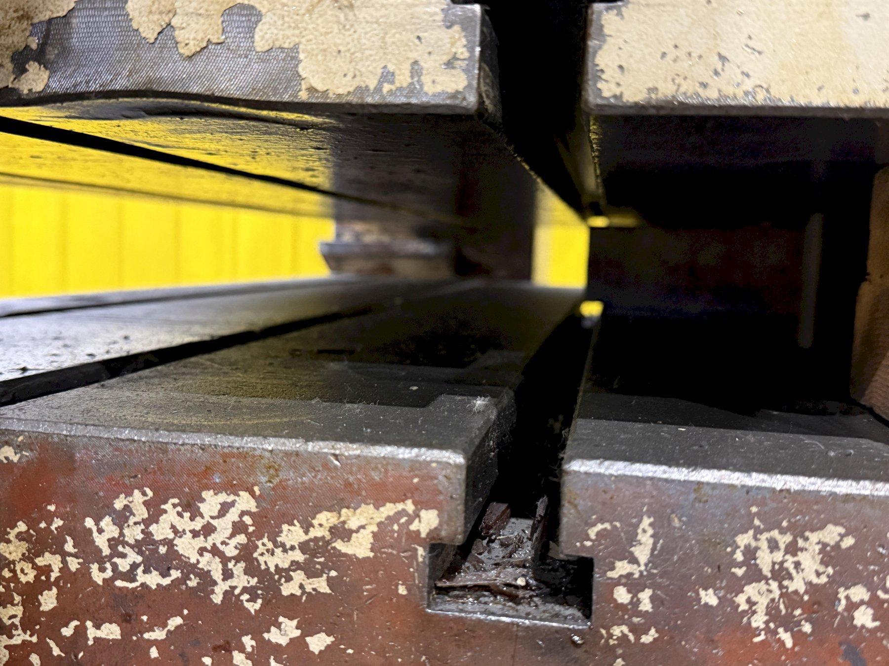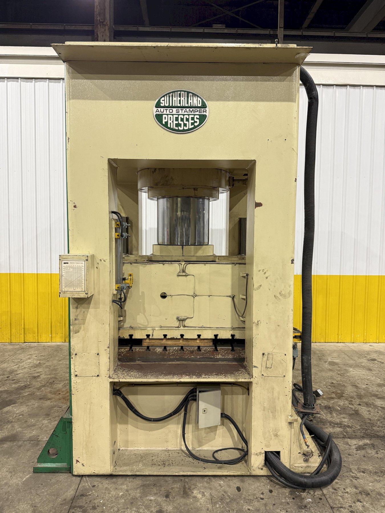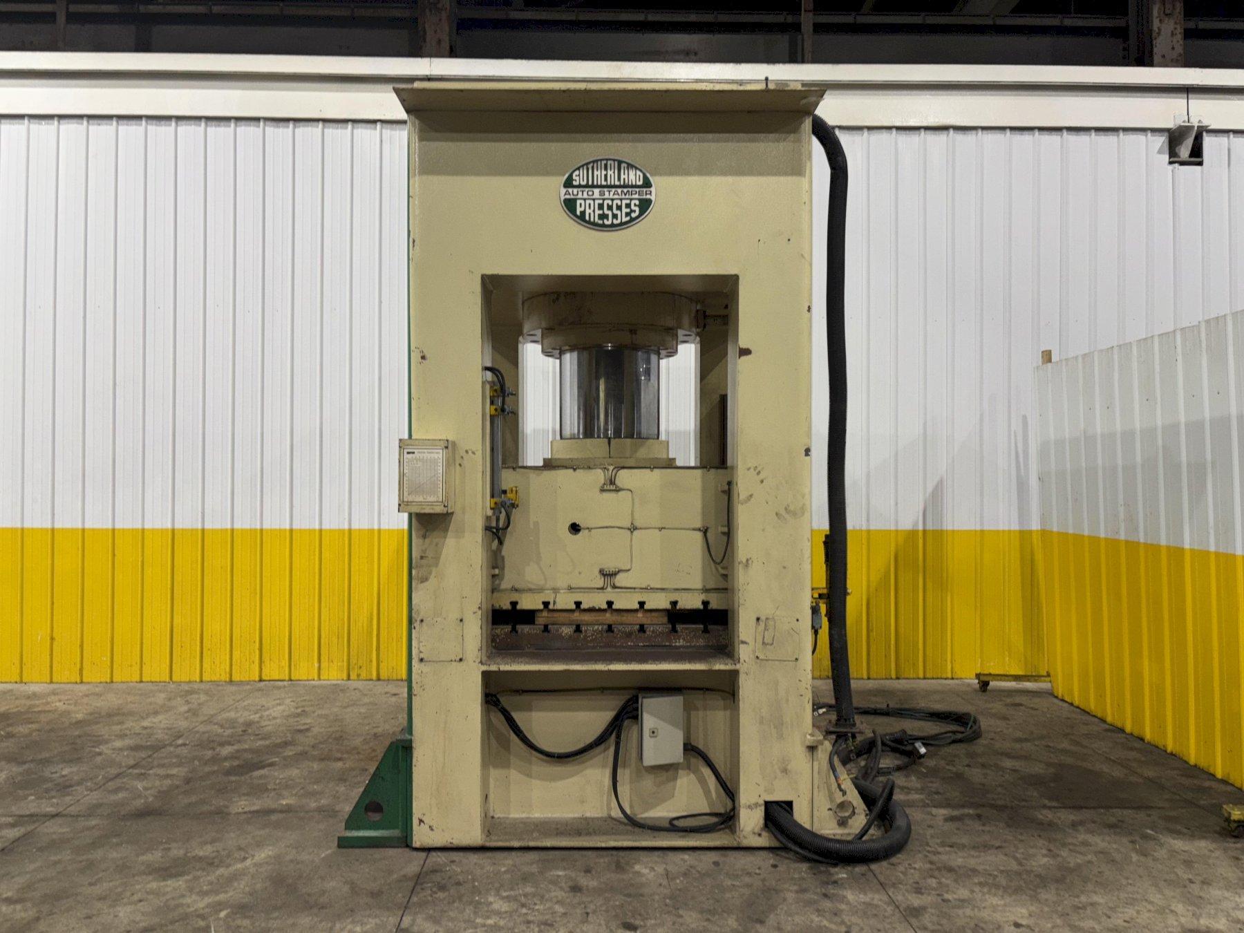 MODEL .............................. HD1-600-43-67 YEAR ............................... 2000 TYPE ............................... DOWNSTROKE HOUSING FLOORSTANDING ...................... YES CAPACITY ........................... 600 TONS LIFTING CAPACITY ................... 42 TONS STROKE ............................. 0 to 15" DAYLIGHT OPENING ................... 19" 8 PONT GIB GUIDED SLIDE ............ YES AREA OF BED (NOMINAL) .............. 43" L-R x 67" F-B AREA OF SLIDE (NOMINAL) ............ 43" L-R x 67" F-B MAIN RAM DIAMETER .................. 22.3"/21.3" @ 3430 PSI - 660 TONS FLOOR TO TOP OF BED ................ 41" DENISON HYDRAULIC PUMP(TOP OF PRESS): MOTOR .............................. 150HP / 1180RPM 230/460V / 3PH /60CY SPEEDS (APPROX); CLOSING ............................ 600"/MINUTE PRESSING ........................... 45"/MINUTE TO 660 TONS RETURN ............................. 600" MINUTE CONTROLS: PUSHBUTTON WITH STROKE & PRESSURE CONTROL DUAL PALM BUTTONS ALL PRESS FUNCTIONS CONTROLLED VIA PLC |