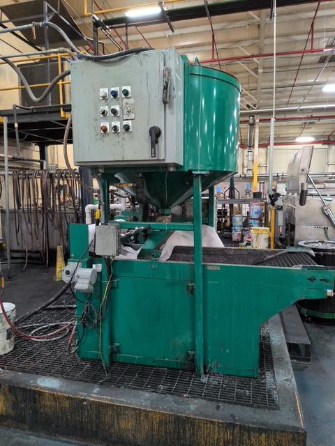 All specifications are assumed to be correct but must be confirmed by the purchasing entity.,Key Features and Specifications Batch Size: 200 gallons Processing Capacity: 400 gallons/hour Electrical: 240/480V 3-phase Construction: Steel frame, powder coated Automation Level: Semi-auto standard; full-auto optional Filter Media: 33″ roll, auto-indexing Pump: Onboard discharge pump (float-actuated) Control Panel: Allen Bradley (or equivalent), includes: – Countdown mixer timer – “RT Full” light indicator – Rinse-down package – Auto-fill function Sludge Handling: Self-tipping gondola; no filter press needed Warranty (original): 3-year, 100% parts replacement (if OEM covered) Applications: – Aqueous waste from floor scrubbers, plating, polishing – Mop water, coolant wastewater, vibratory deburring fluids – Quench tanks, die lube, and machine washdown systems All specifications are assumed to be correct but must be confirmed by the purchasing entity. |