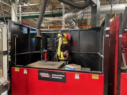 All specifications are assumed to be correct but must be confirmed by the purchasing entity.,Equipped With: FANUC ArcTool Software AD1253-254 PMC Robot Software (Programmable Machine Controller, Ladder Logic) AD1253-77 CheckPoint Cloud Monitoring Software AD1253-37-FI Torch Guard Software (Collision Guard, TorchMate 3 TCP Adjustment) AD1253-90 TouchSense & TAST Bundle (TouchSense, Thru-Arc Seam Tracking AD1564-1 System 5 Workcell With Palletized Base And Surround Enclosure Pneumatic Pop-Up Curtain For Arc-Flash Protection Operator Palm Station With Cycle Start, Fast Reset, And E-Stop AD2391-1 Power Reamer & Wire Clipper With Anti-Spatter Fluid Educational 2D iRVision Package With FANUC XC-56 CCD Scan Camera Banner LED Red Spotlight All specifications are assumed to be correct but must be confirmed by the purchasing entity. |