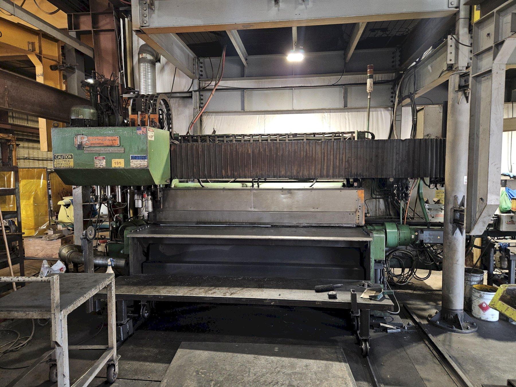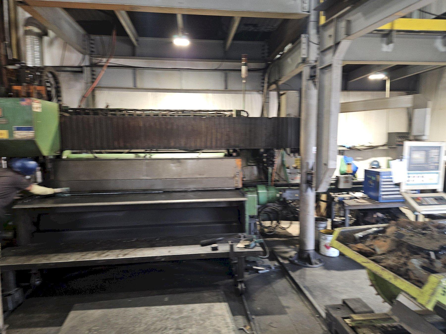 This machine is currently in use on a daily basis in our facility.  It is in excellent working order and has had the drop down table completely refurbished recently.  It has 20' infeed conveyors and a removable 5' outfeed conveyor.  Also includes Torit dust filtration system.  Comes with all tooling and requires no additional equipment or parts to go directly into production.