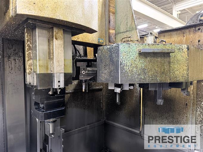 Table Diameter 66" Maximum Swing 71" Maximum Height Under Rail 62" Maximum Height Under Tool Block 50" Vertical Travel of Ram 39.37" Horizontal Travel of Ram +4" / -47.6" Ram Cross Section 8.26" x 8.26" Table Speeds: Inf Variable 1 - 450 RPM Max Cutting Force 11,240 Lbs Table Weight Capacity 65,000 lbs Machine Footprint (L x W) 165" x 200" Machine Height 215" Machine Weight 75,000 lbs Equipped With: Fanuc 18i-T CNC Control 12 Station Automatic Tool Changer 66" 4-Jaw Independent Chuck 80 HP Siemens Main Drive Spindle Motor Full Splash & Chip Enclosure Chip Conveyor NOTE: Inspect in Plant Under Power |