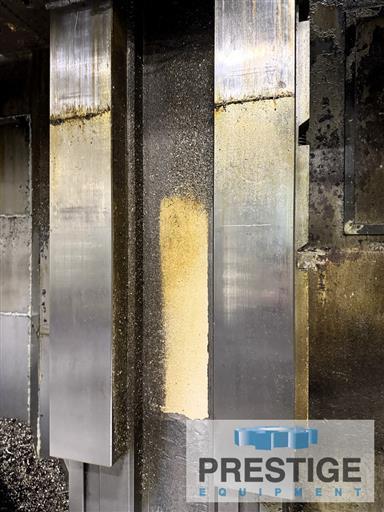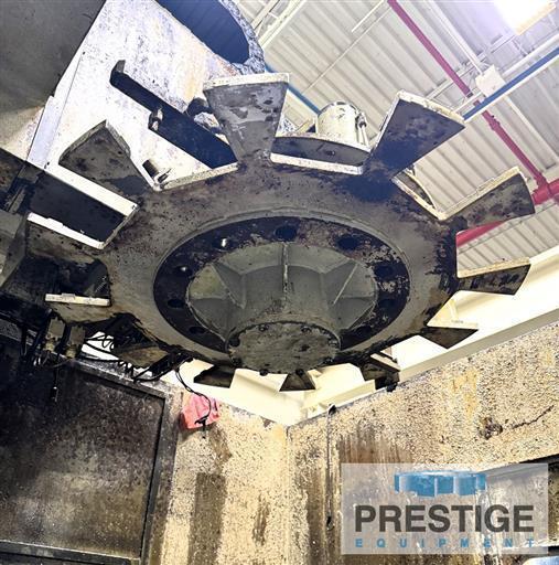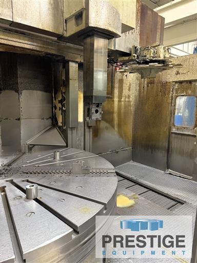Table Diameter 86.6" Maximum Swing 98.42" Maximum Height Under Rail 72.8" Maximum Height Under Tool Block 61" Cross Rail Travel 47.2" Vertical Travel of Ram 59" Horizontal Travel of Ram -51.2"/+55.1" Ram Cross Section 8.26" x 8.26" Table Speeds: Inf Variable 1 - 300 RPM Max Cutting Force 11,240 Lbs Table Weight Capacity 80,000 lbs Machine Footprint (L x W) 177" x 276" Machine Height 228" Machine Weight 110,000 Lbs Equipped With: Fanuc 18i-T CNC Control 12 Station Automatic Tool Changer 86" Table with (4) Chuck Jaws Full Splash & Chip Enclosure Steel Sliding Way Covers 100 HP Spindle Drive Motor NOTE: Tool Changer Not Operational |
