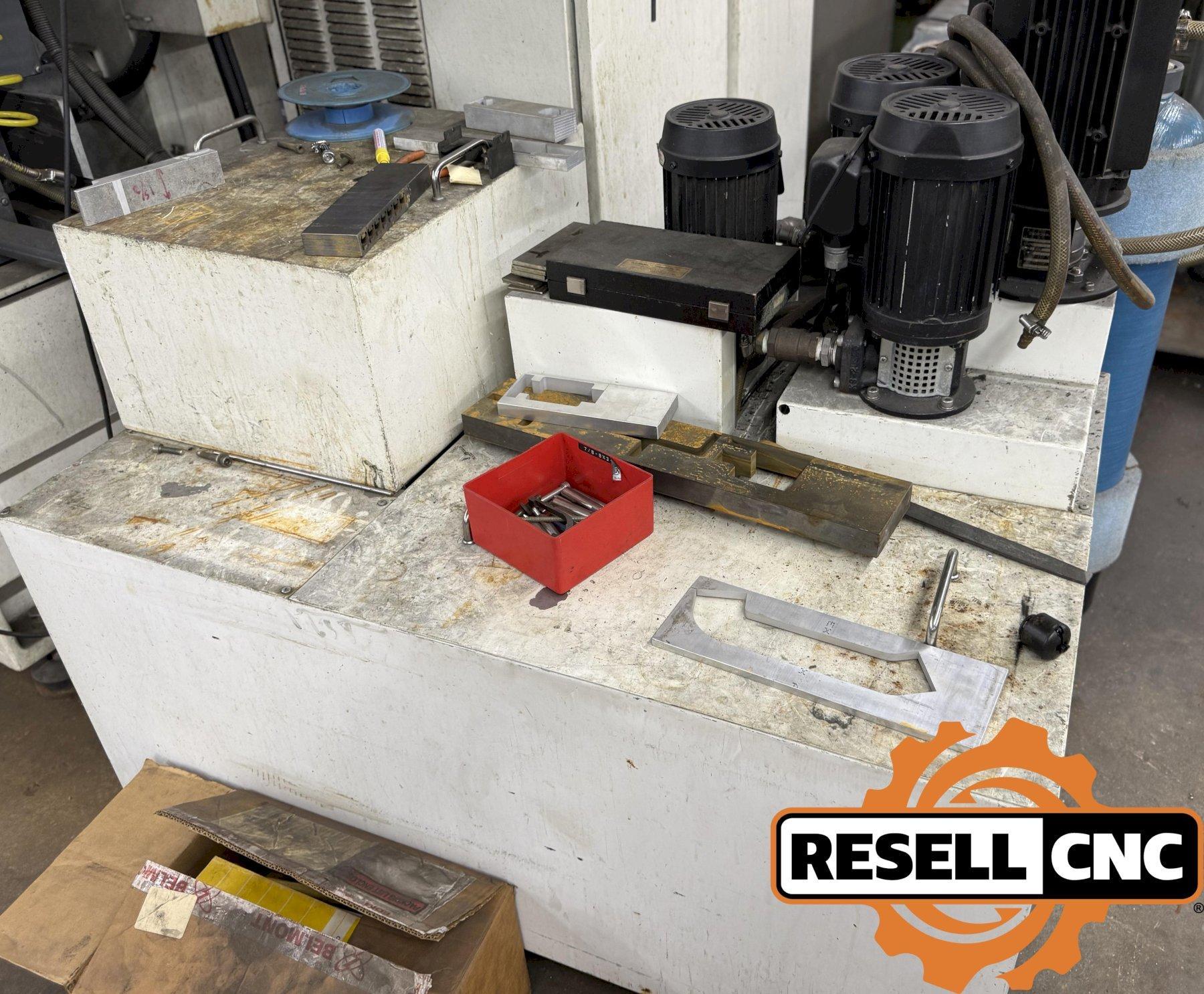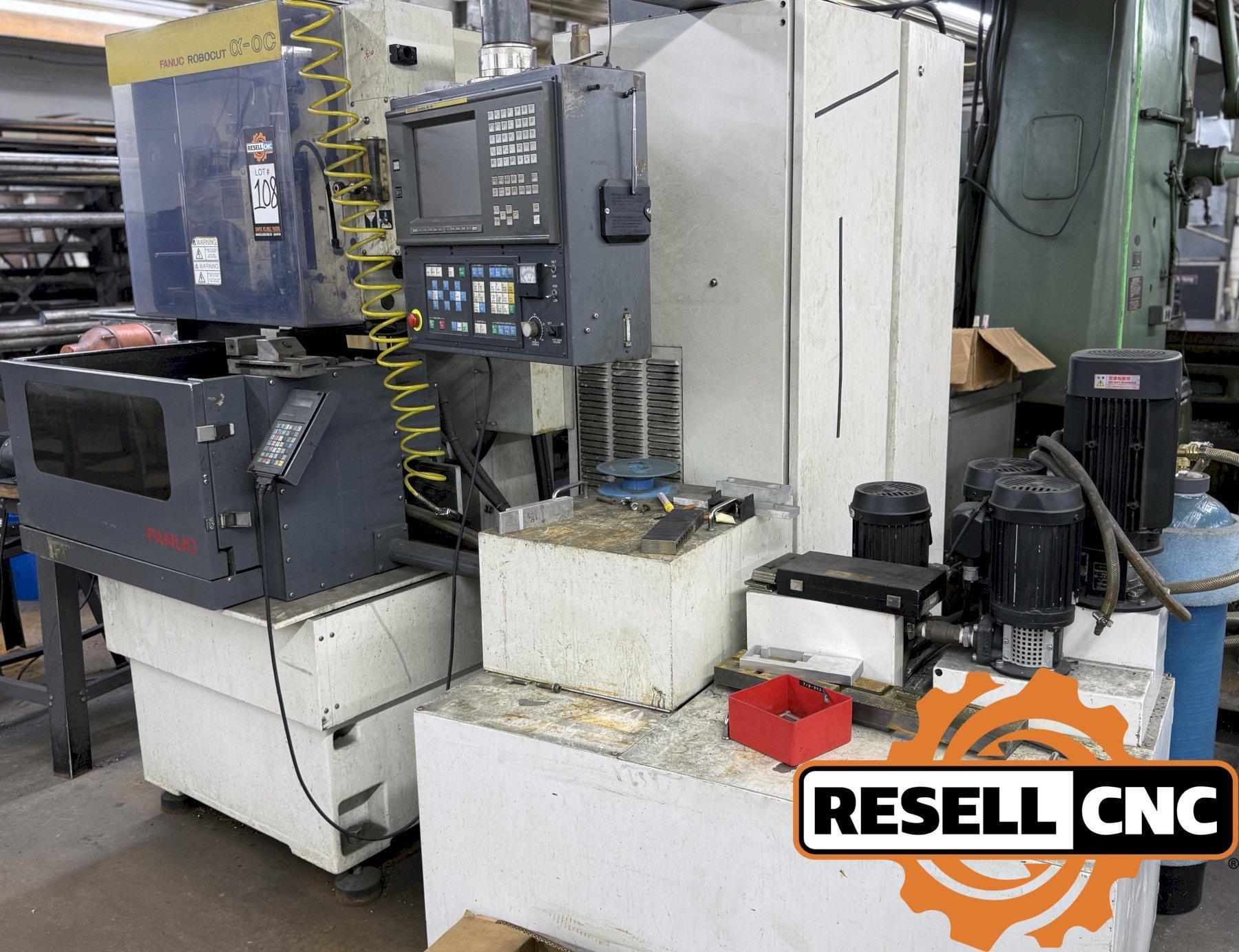 The 1997 Fanuc Robocut A-0C CNC Wire EDM is a precision wire cutting system equipped with Fanuc’s 16-W CNC control for advanced automated contouring. It incorporates an Ebbco triple filtration unit and dedicated fluid tank with pumps, ensuring stable dielectric flushing and improved cutting conditions. Designed for toolroom, mold, and die applications, the machine provides reliable CNC programmability combined with robust fluid management for consistent, accurate machining of complex geometries.