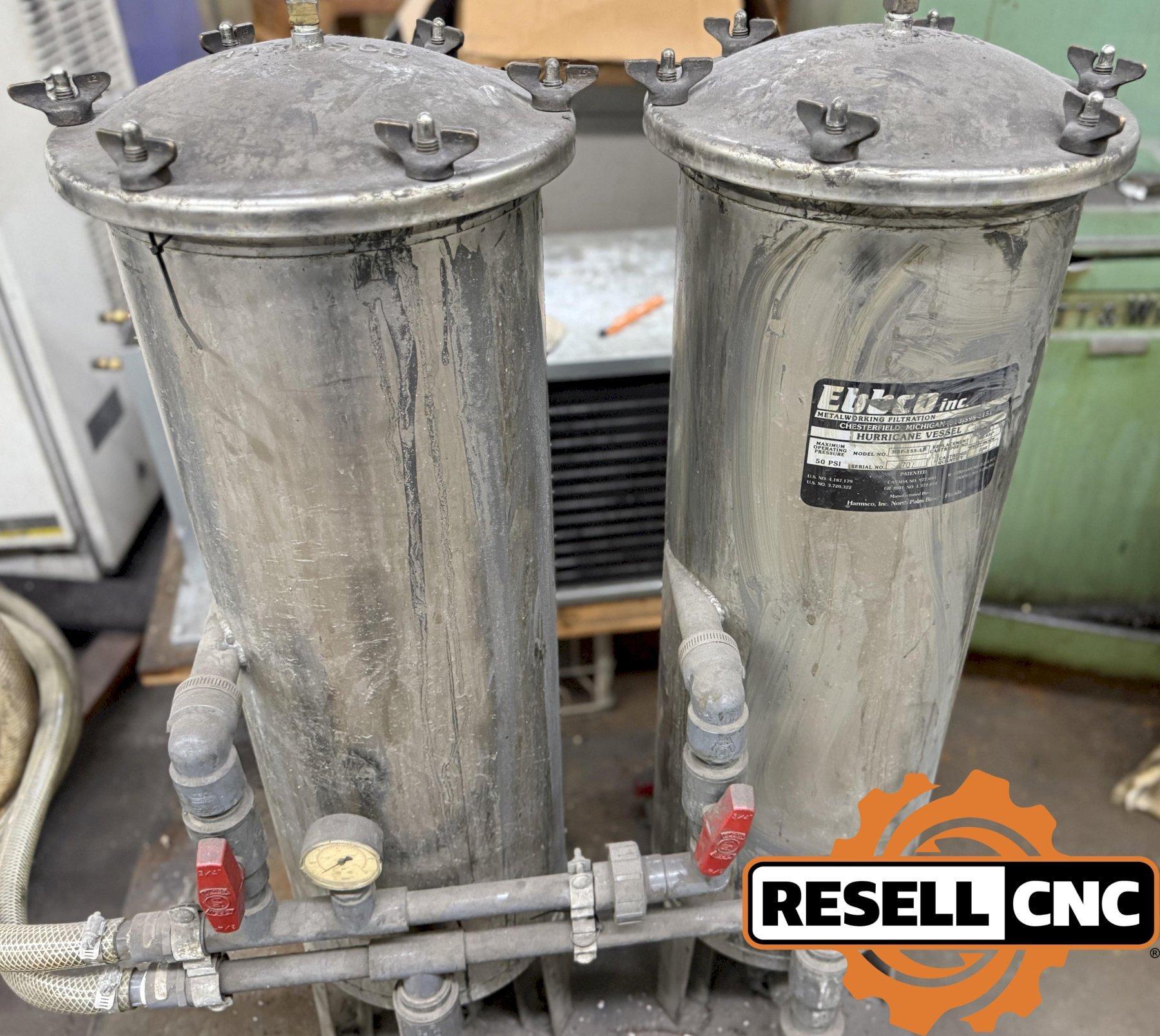 Compared to earlier Fanuc Robocut models with simpler controls and filtration systems, the A-0C introduced more advanced CNC functions and higher reliability through Ebbco’s triple-stage dielectric cleaning. This combination reduced wire breakage, extended component life, and improved surface finish, making it superior for shops transitioning from manual EDMs or older NC systems to full CNC wire cutting. Ebbco Twin Filtration Unit Fluid Tank w/ Pumps |