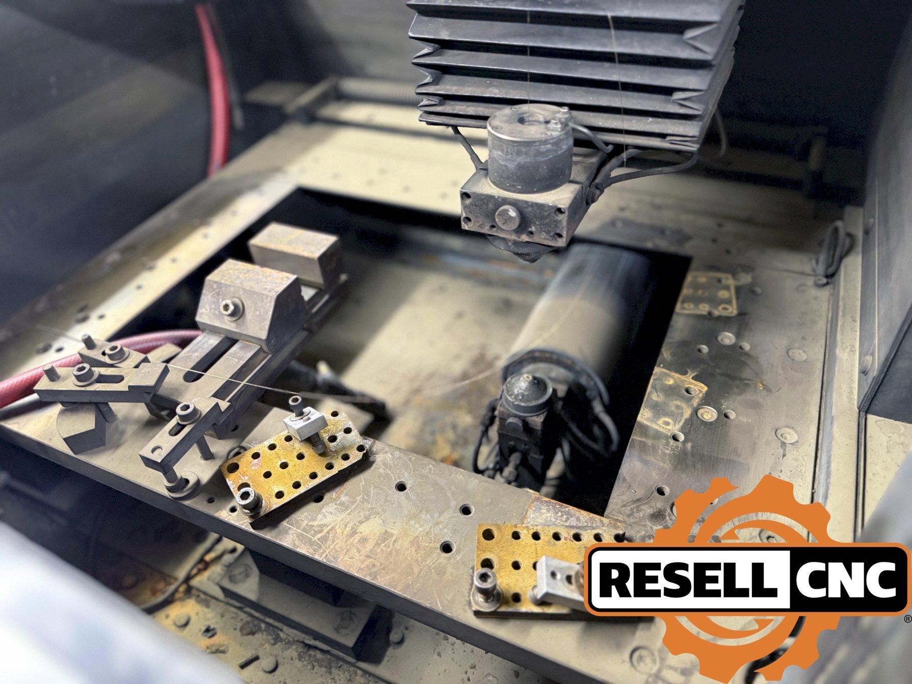 The 1995 Fanuc Robocut A/1B CNC Wire EDM is a precision electrical discharge machine equipped with a Fanuc 16-W CNC control for programmable, automated contour cutting. Its fluid management system includes an Ebbco triple filtration unit and circulation pumps, maintaining clean dielectric conditions for improved accuracy, reduced wire wear, and consistent performance. This EDM system enables machining of intricate die sections, punches, and molds with repeatable micron-level precision.