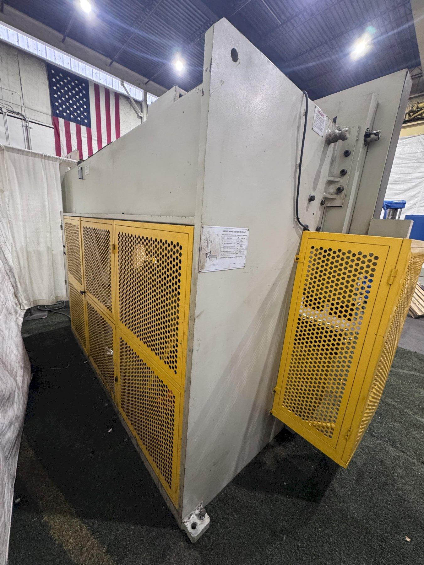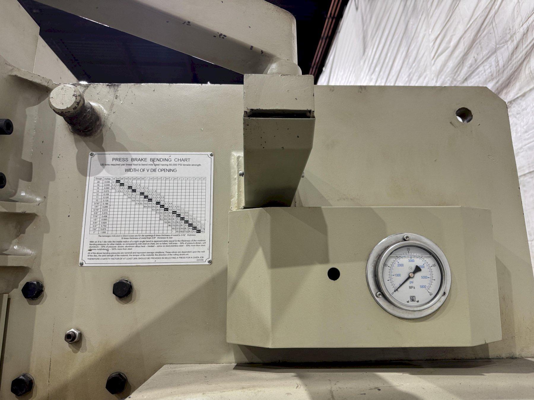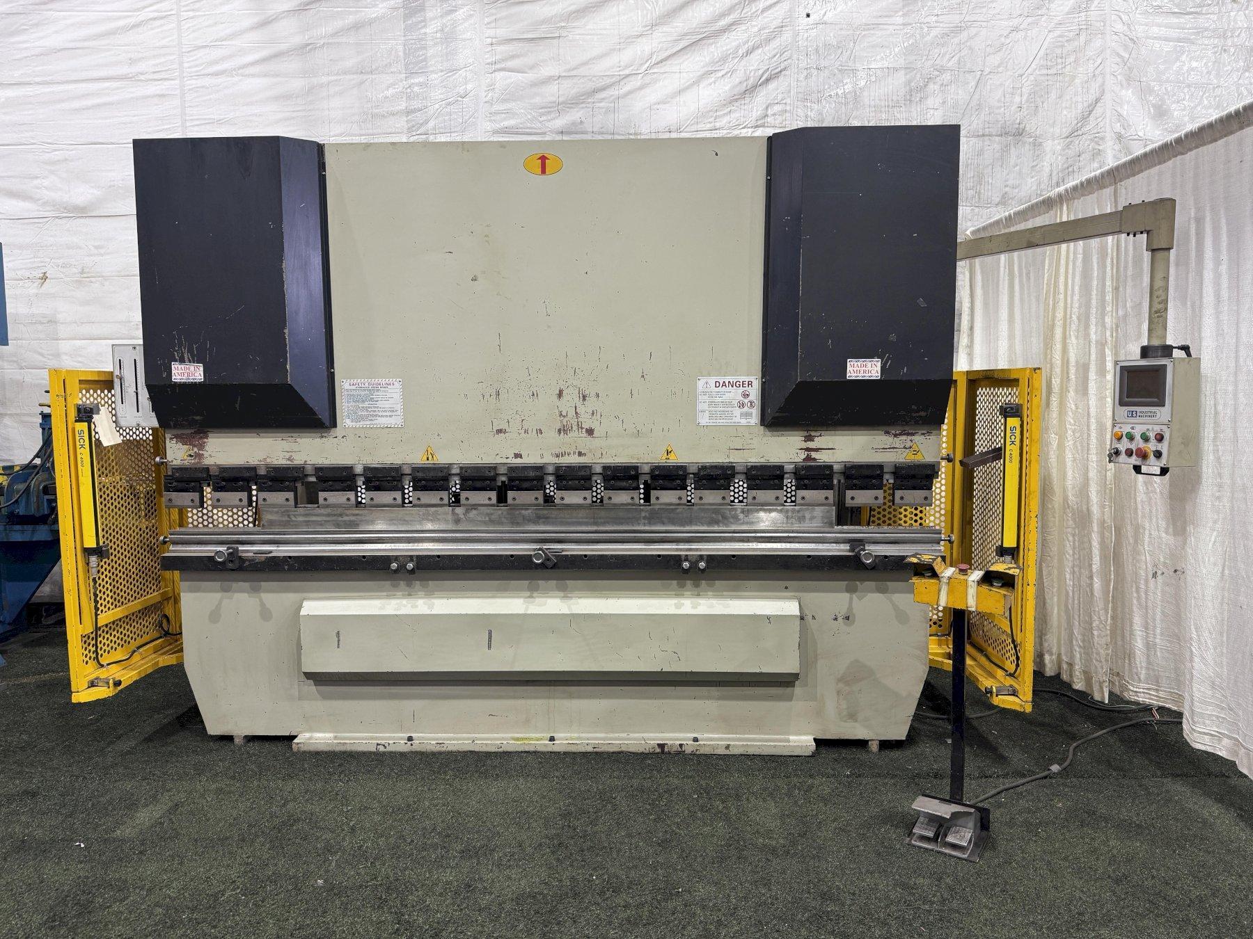 SERIAL ................................ W2007-95 MODEL ................................. 80X3200 YEAR NEW .............................. 2007 CAPACITY .............................. 88 TONS OVERALL LENGTH OF BED ................. 125.9 DISTANCE BETWEEN HOUSINGS ............. 106.2" STROKE ................................ 3.93" OPEN HEIGHT ........................... 13.7" DEPTH OF THROAT ....................... 9.8" POWER RAM ADJUSTMENT .................. 1.96" RAM SPEED RAPID TRAVEL ................ 2.4" IPS RAM SPEED RETURN ...................... 2 IPS 2 AXIS COLOR GRAPHIC CNC BACKGUAGE .... YES LCD 6" TOUCH SCREEN ................... YES BACK GAUGE TRAVEL ..................... 24" TOUCH SCREEN PROGRAMABLE CONTROL ...... YES AUTO CROWNING ......................... YES R AXIS ................................ YES 4 WAY BOTTOM DIE INCLUDED ............. YES ELECTRIC FOOT PEDAL ................... YES DUAL PALM BUTTON ...................... YES MOTOR ................................. 10 HORSEPOWER ** BRAKE DIES NOT INCLUDED ** |