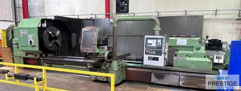 Swing Over Bed 57.08" Swing Over Carriage 39.37" Distance Between Centers 157.48" Spindle Bore 20.27" Spindle Speed 1.5 - 450 RPM Max. Workpiece Weight 33,000 Lbs Equipped With: Siemens Sinumerik CNC Control 20.27" Spindle Bore Front & Rear 4-Jaw Chucks Baruffaldi 4-Way Auto Indexing Tool Turret 2 - 3 Point Steady Rests Chip Conveyor |