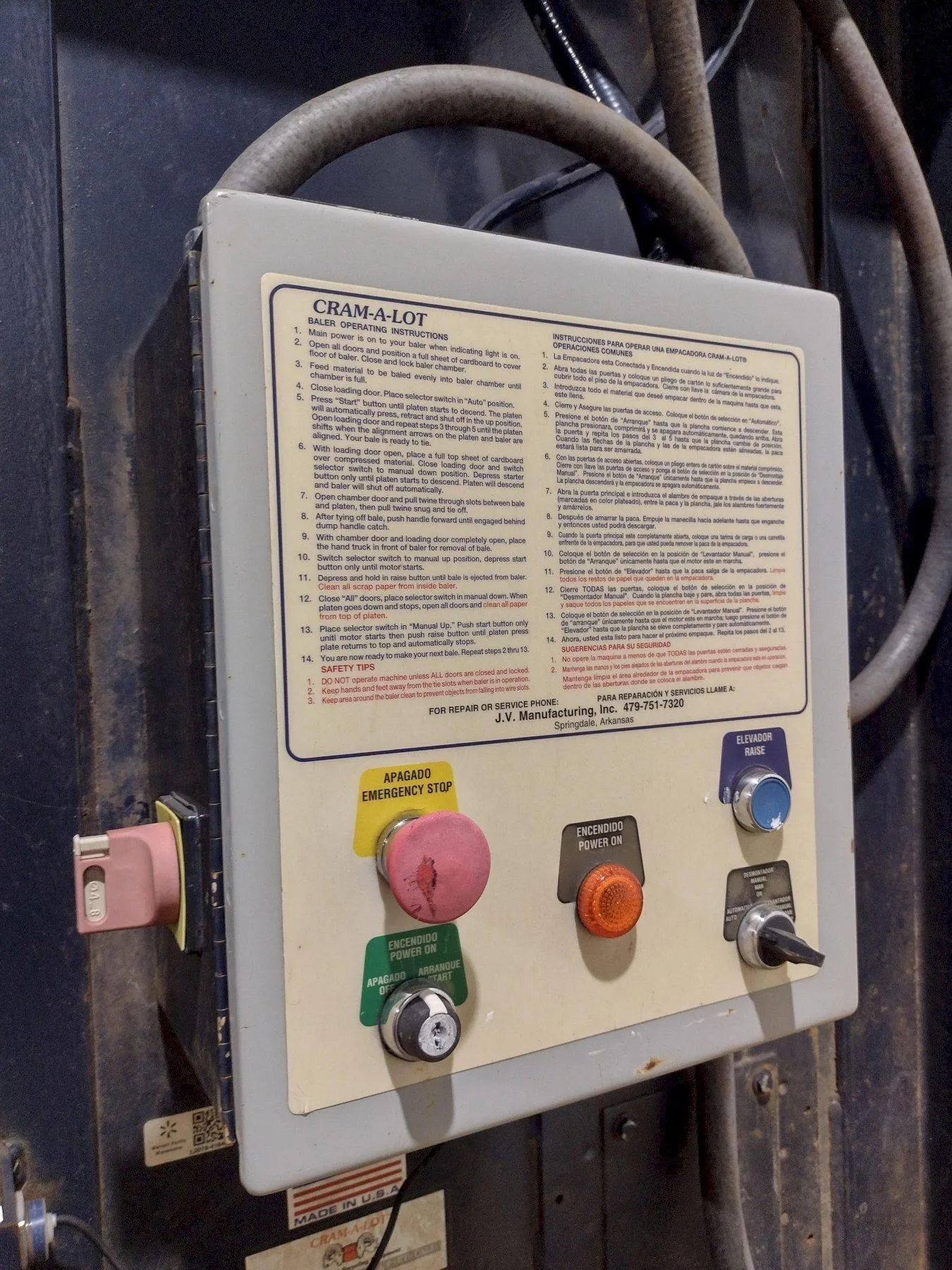 72" X 30" JV MFG CRAM A LOT MODEL #DBR-72-H VERTICAL HYDRAULIC CARDBOARD BALER: STOCK #18058