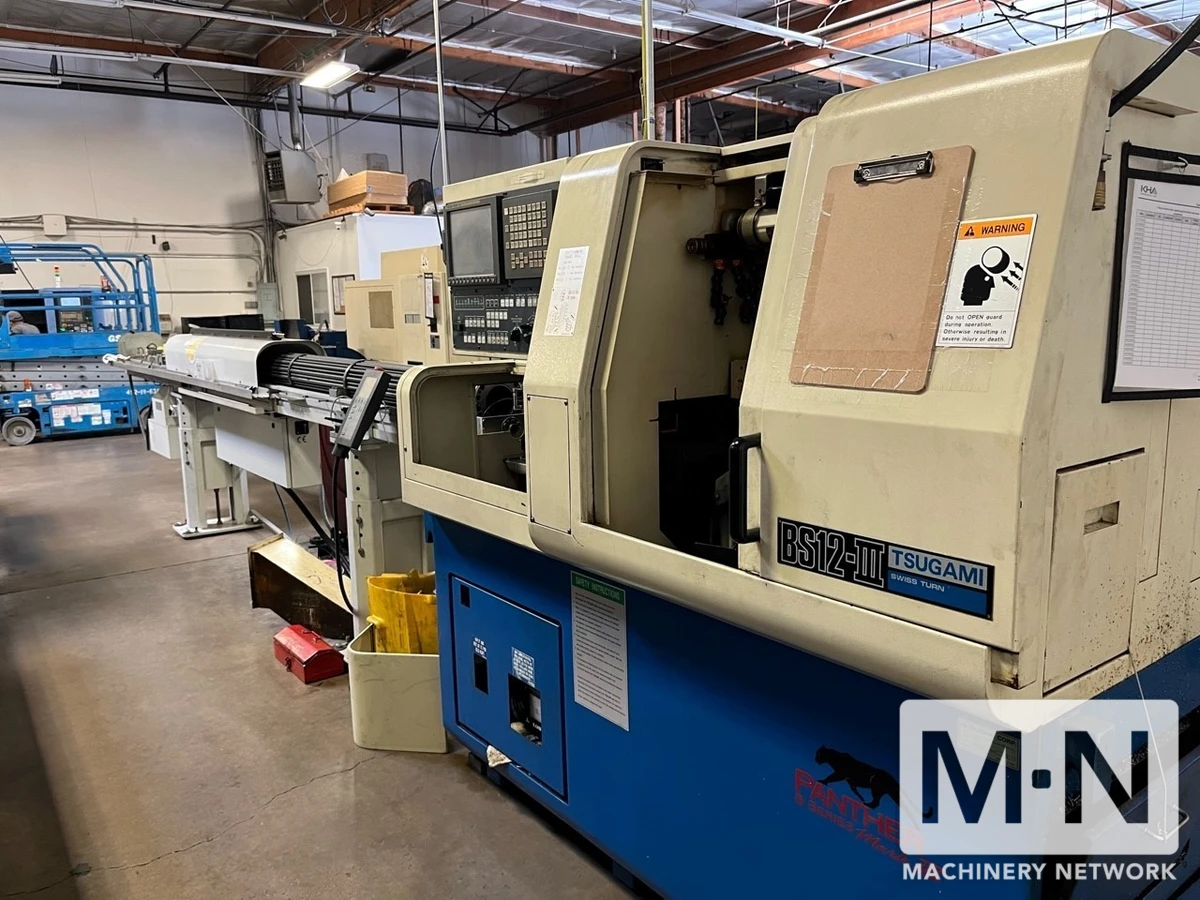 DescriptionUpgrade your machining with a 2001 Tsugami BS12B III CNC Swiss Machine. Includes a 0.47" spindle, 12k RPM, 8k sub spindle speed, LNS Tryton 112 Barfeeder, 6-axis control, live tooling, and C-axis spindle. Perfect for precise, complex work. Controllable Axes: 5 (X1, Z1, A, X2, Z2)