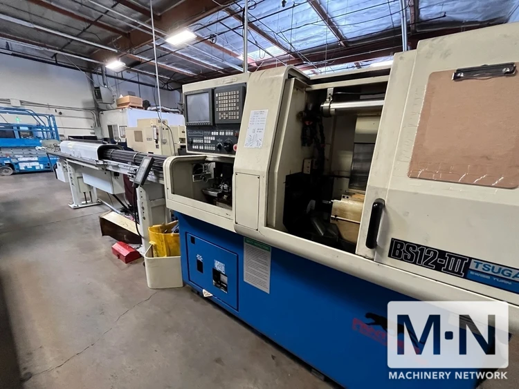 DescriptionUpgrade your machining with a 2001 Tsugami BS12B III CNC Swiss Machine. Includes a 0.47" spindle, 12k RPM, 8k sub spindle speed, LNS Tryton 112 Barfeeder, 6-axis control, live tooling, and C-axis spindle. Perfect for precise, complex work. Controllable Axes: 5 (X1, Z1, A, X2, Z2)
