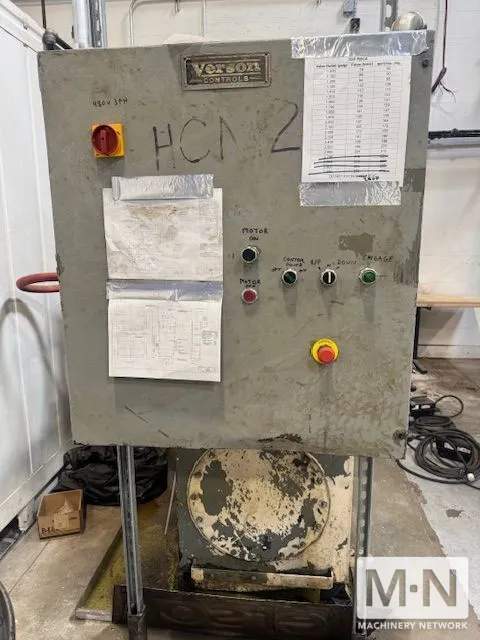 OverviewCAPACITY 200 TONS MAX. STROKE 54" DAYLIGHT TO BED 26" MIN - 80" MAX BED AREA APPROX. 86" X 54" (RL X FB) DISTANCE BETWEEN POST 74" X 32" (RL X FB) USABLE BED & RAM AREA 74" X 54" (RL X FB) CYLINDER SIZE TWO 7" DIA. CYLINDERS - Modification:CYLINDER SIZE THREE 8" DIA. CYLINDERS ROD SIZES TWO 5.5" DIA. RODS - Modification: ROD SIZES THREE 5.5" DIA. RODS POST SIZE 5.5" DIA. FLOOR TO BED 36" PRESS CONTROLS VERSON CONTROLS - Modification - PRESS CONTROLS MODIFIED ELECTROMECHANICAL HYDRAULICS ABEX DENISON HYDRAULIC PUMP | PARKER VALVE D63W1B44Y ELECTRICS 25 HP LINCGUARD LINCOLN MOTOR - Modification: • 480V - 3PH - 60HZ | 37.7 AMP - -- -hydraulic pump and reservoir have been removed from the crown and placed on the ground adjacent to the press. The hydraulic pump system and press systems are now effectively separate, connected systems. |