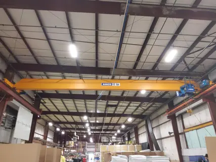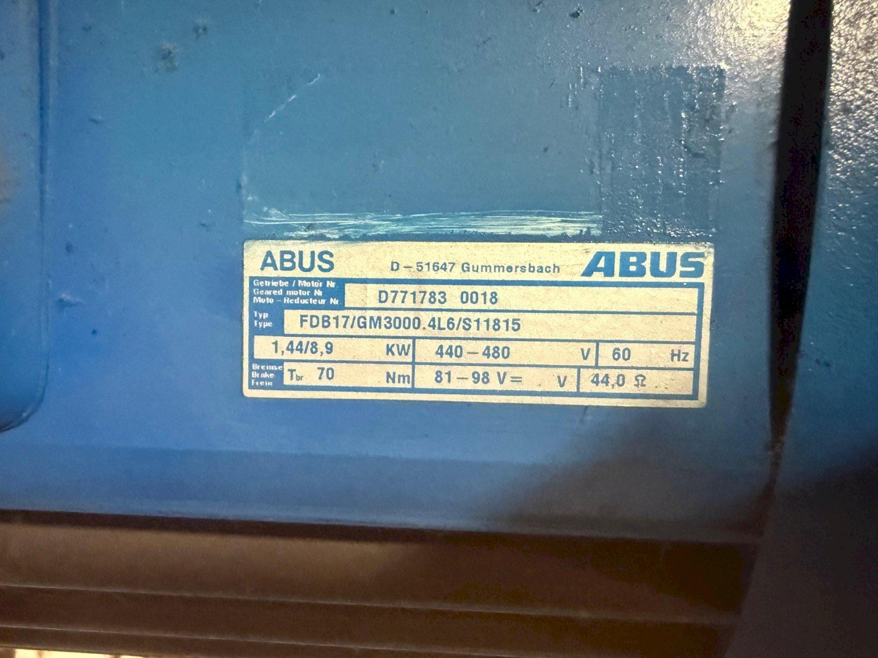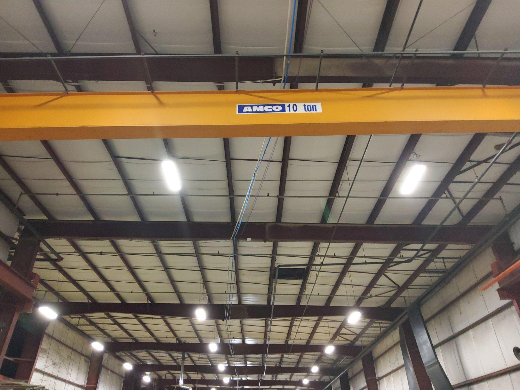 CAPACITY 10 TON CLASS C SPAN 46'9.5"' SINGLE GIRDER TOP RUNNING BRIDGE UNDERSLUNG HOIST HOIST MODEL GM3100L6-161.41.064.E LIFT 21'2" END TRUCK LENGTH 9'1" MAIN BEAM 34" HEADROOM ABOVE RAIL 34" BRIDGE SPEED 80/20 FPM BRIDGE MOTORS 2 @1.1/.23 HP TROLLEY SPEED 80/20 FPM BRIDGE MOTORS 2 @.45/.10 HP HOIST SPEED 16/2.6 FPM BRIDGE MOTORS 2 @12.7/2.04 HP |