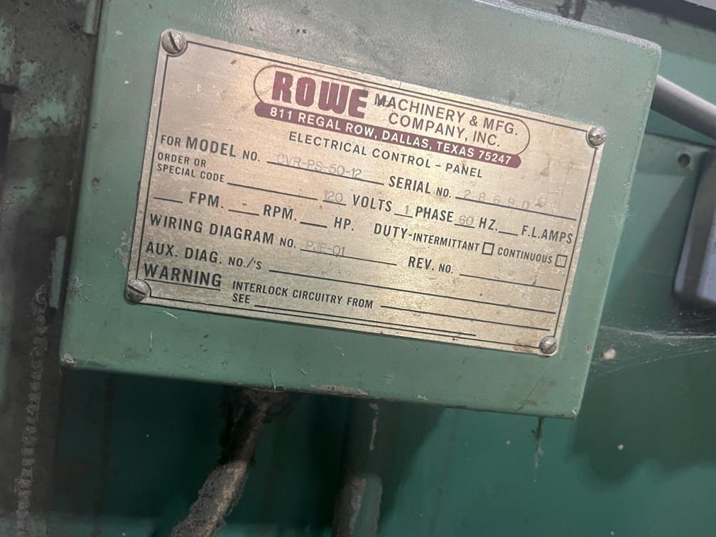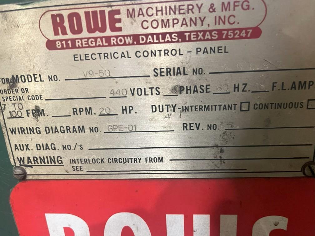MODEL 20050-DSV SN 28686 60" MANDREL 19"-24" ID 60" OD HOLD DOWN COIL CAR 50" X .250" ROWE STRAIGHTENER MODEL V9-50 SN 28687 9 ROLL STRAIGHTENER .020" - .250" CAPACITY 7-100 FPM HUMP TABLE 50" X .250" SHEAR EXIT CONVEYOR CONTROL CONSOLE |