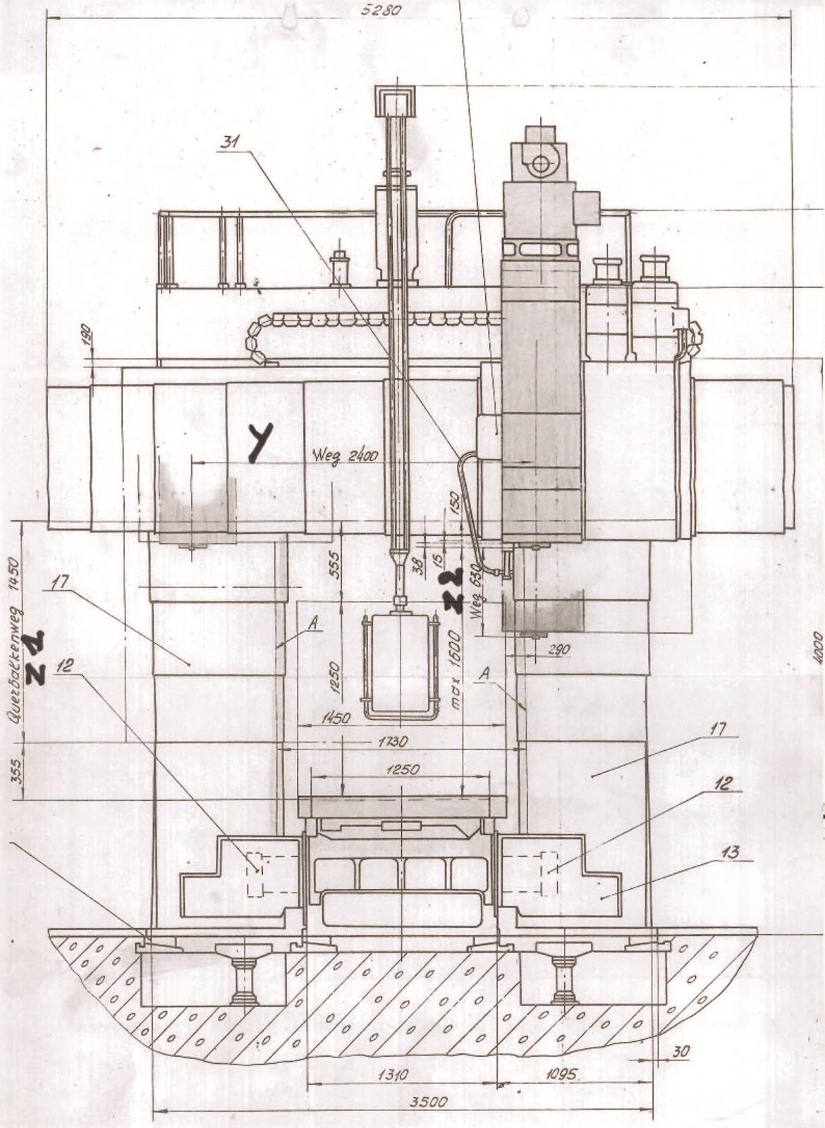 Z2 height travel (ram milling head): 630 mm