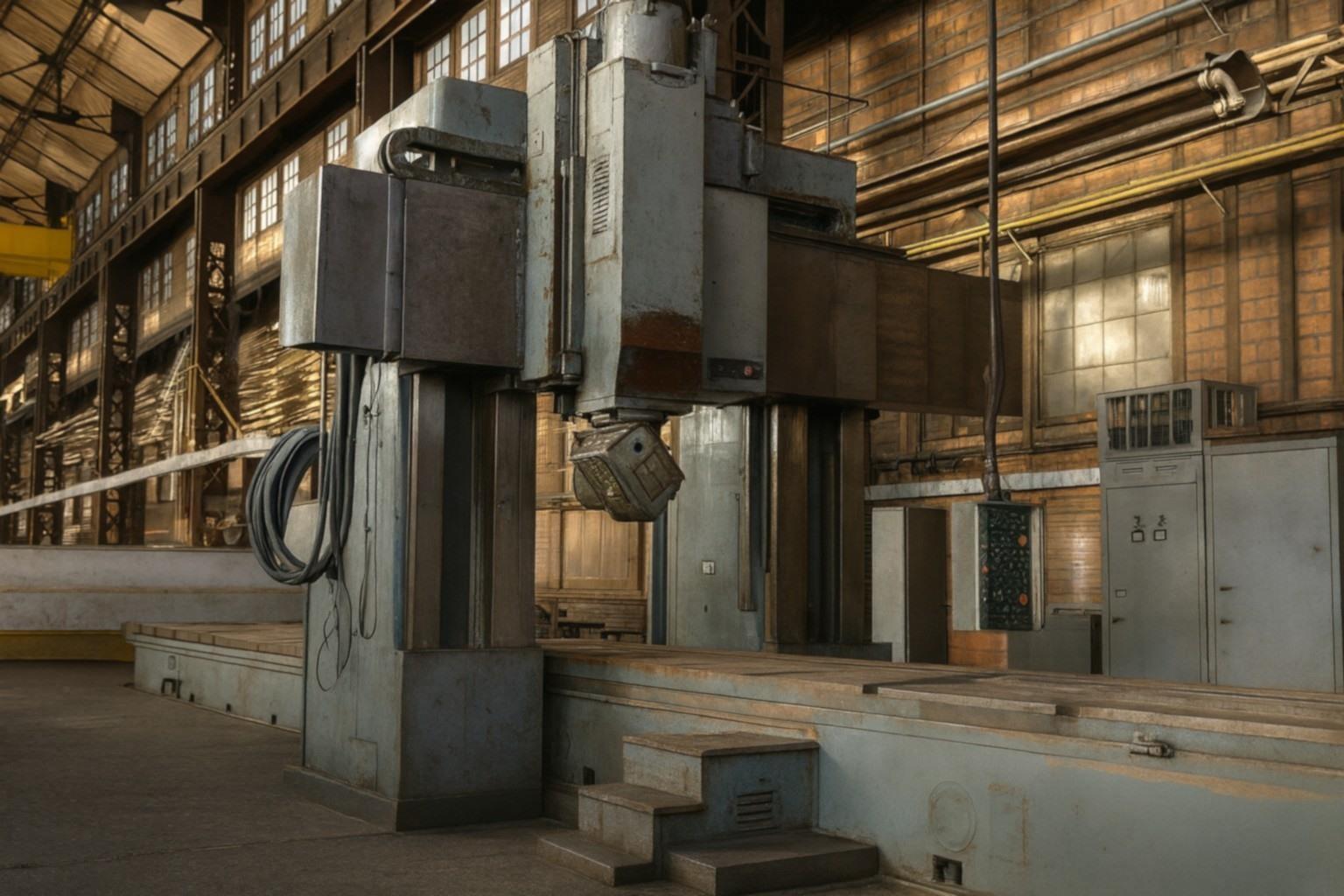 • Portal bed milling machine with movable table.