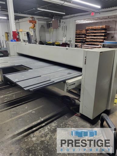 Maximum Sheet Thickness 14 Ga. Maximum Bending Width 126" Clamping Beam Stroke 11.81" Back Gauge Range 61" Upper Beam Open Height Max. 7.87" Working Height 33.5" Drive Motor 3 H.P. Approximate Floor Space 170" x 83" x 55" Equipped With: Multibend 6000 CNC Control CNC Folding Beam Adjustment For Varying Thickness Automatic Upper Beam Tool Clamping System Electric Foot Switch NOTE: Inspect In Plant Under Power |