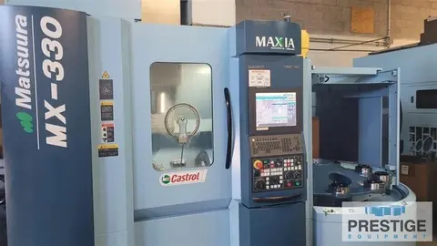 X-Axis Stroke 17.13" Y-Axis Stroke 18.31" Z-Axis Stroke 22.05" A-Axis Rotation -125/+10 Deg. C-Axis Rotation 360 Deg. Working Surface 9.84" Loading Capacity 176 Lbs. Maximum Workpiece Size 12.99" x 12.59" Spindle Drive 15 HP/ 20 HP Spindle Speeds, Max. 20,000 RPM Spindle Taper CAT #40 Rapids, X/Y/Z 1574.8 IPM Feed Rate X/Y/Z 0.03-1574.8 IPM Approximate Weight w/ Pallet System 21,500 Lbs. Equipped With: Matsuura G-TECH 31iB CNC Control with 15" Touch Screen 20,000 RPM High Speed CAT #40 Oil-Air Lubricated Spindle 10 Station Pallet System Renishaw OMP-60 Spindle Probe Renishaw NC-4 Laser Tool Setter Probe High Pressure Coolant Pump (300 PSI) with Fine Filtration Environmental Thermal Displacement Compensation 90 Station Automatic Tool Changer Mist Collector & Air Dryer Spindle Oil Cooler with Overload Protection LNS Turbo Micor-Hinge 250 Chip Conveyor(Rear Discharge) NOTE: Inspect Under Power |