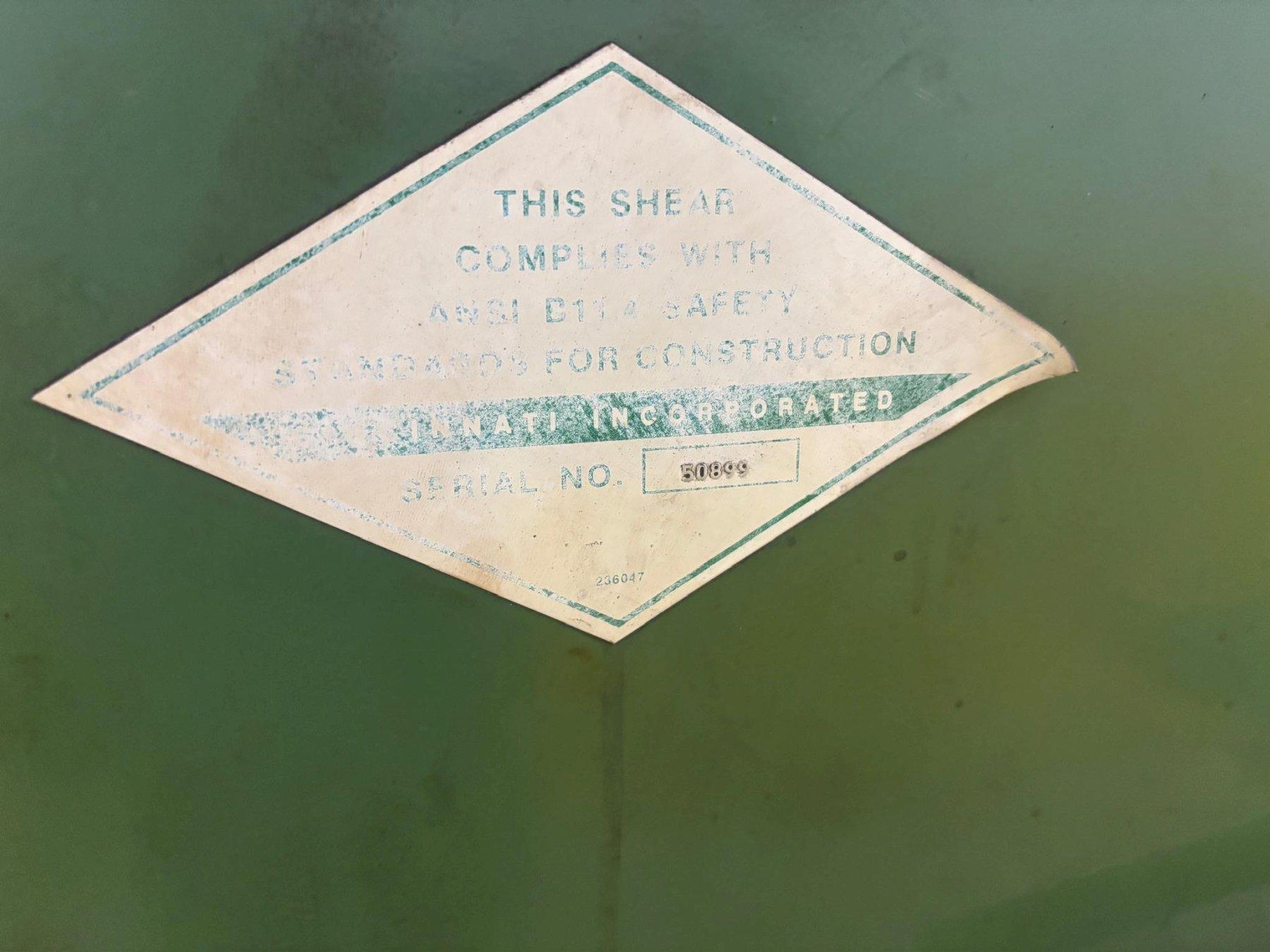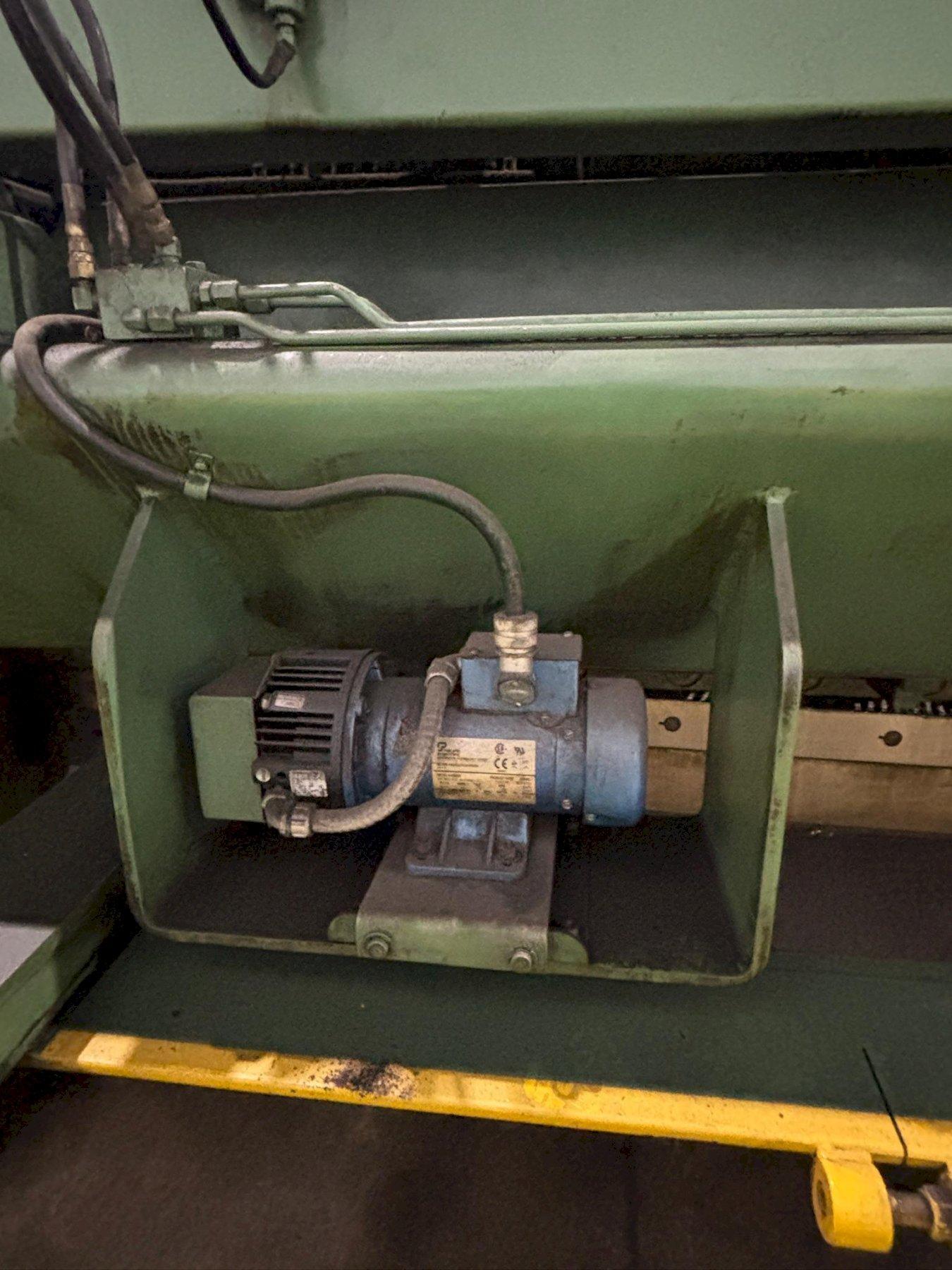 START / STOP PUSH BUTTONS ..................... YES UP /DOWN SELECTOR SWITH FOR GAUGE ............. YES STROKE COUNTER ................................ YES TRANSFER BALLS (TOP OF TABLE) ................. YES (6) DOVETAIL SLOTS (TOP OF BED) ............... YES DOVETAIL SLOT (FRONT OF BED) .................. YES MATERIAL THICKNESS & LENGTH KNOBS ............. YES REAR PARTS CHUTE .............................. YES BACK GAUGE MOTOR .............................. 1/2HP/1750RPM/90DC HYDRAULIC PUMP MOTOR .......................... 25HP/1775RPM/230/460V/3PH/60CY KEY SELECTOR SWITCH INCH/OFF/SINGLE STROK/CONTINUOUS MAX MIN POWER BLADE CLEARANCE ADJ W/CONTROL FOR MAX/MIN |