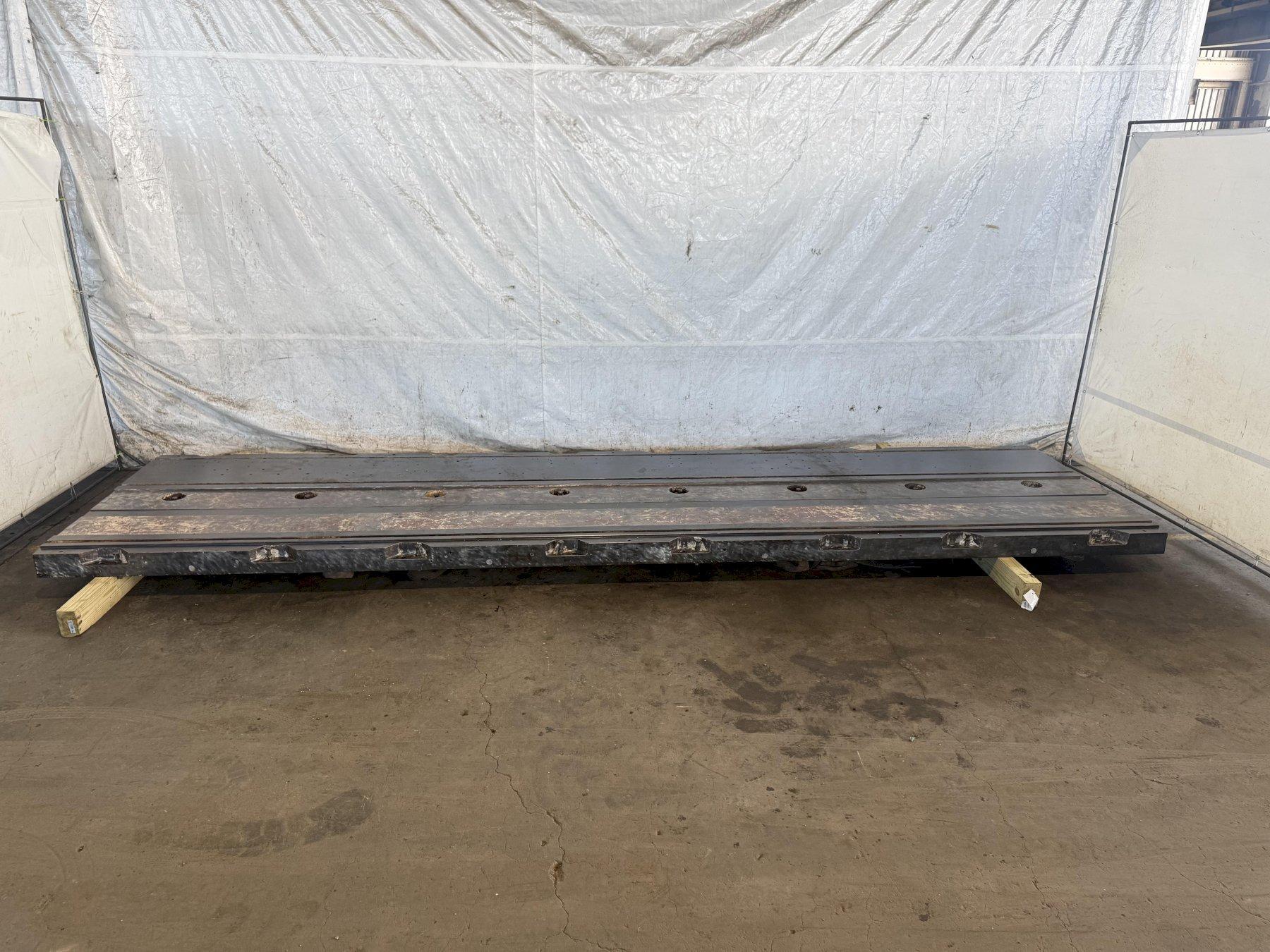 LENGTH OF PLATE...................: 240" THICKNESS OF PLATE................: 6" # OF T SLOTS......................: 3 T SLOT CENTERS....................: 33",19" T SLOT DEPTH......................: 2" T SLOT WIDTH (TOP)................: 1" T SLOT WIDTH (BOTTOM).............: 2" |