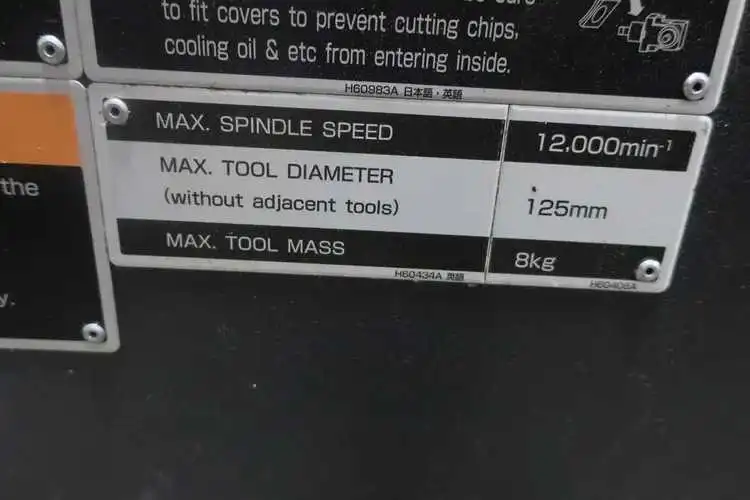 Tool changing time sec 1.25