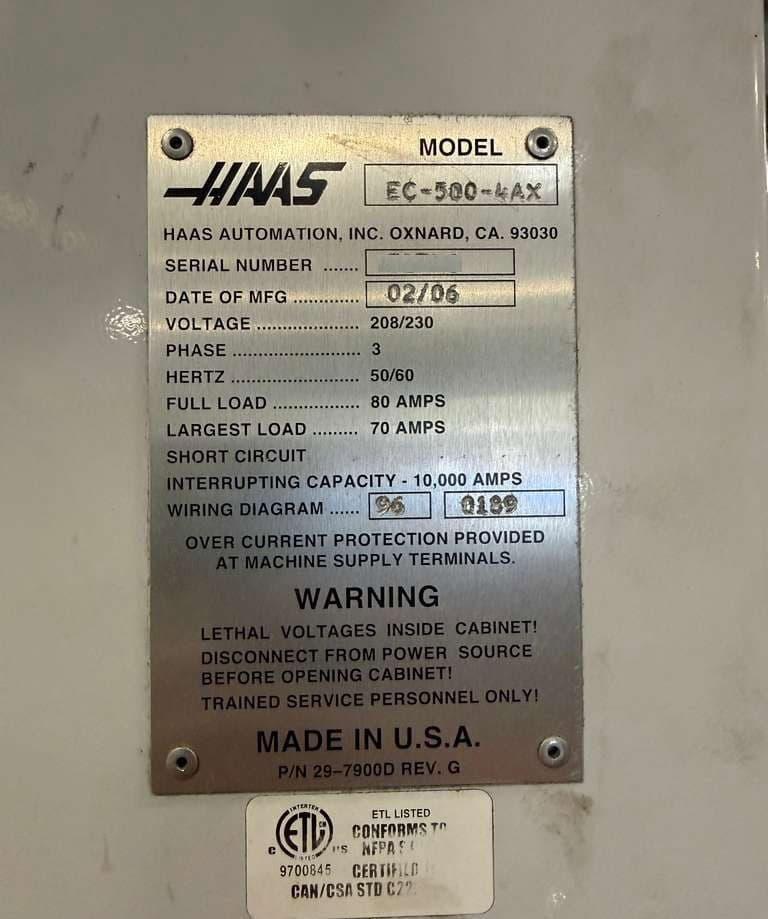 HAAS EC-500 CNC Horizontal Machining Center, 2012