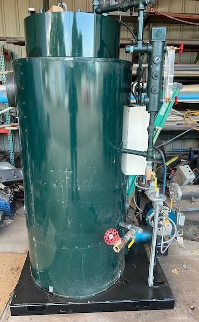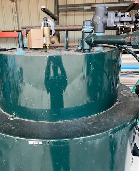 2002 Columbia CT‑37.6‑S vertical tubeless steam boiler with a matching Power Flame C1‑G‑10B natural gas burner. Unit is rated at 150 PSI and provides ~1,576 lb/hr steam capacity. Burner gas train, wiring, and safety components appear intact. Ideal for laundry, brewery, light industrial, and institutional steam applications. All specifications are assumed to be correct but must be confirmed by the purchasing entity.,Key Features and Specifications Boiler – Columbia CT‑37.6‑S – Vertical tubeless, 3-pass firetube steam boiler – Steam Pressure: 150 PSI – Steam Capacity: ~1,576 lb/hr – Boiler Horsepower: 37.6 HP – Heating Surface Area: 51.7 sq ft – Construction: 3/8″ rolled steel shell, 16 gauge jacket – UL Listed – Electrical: 115V, 7.2 Amps, 60Hz – Factory-supplied with blowdown, safety, sight glass, pressure gauge – Ventilation: 18″ min clearance to combustibles Burner – Power Flame C1‑G‑10B – Fuel Type: Natural Gas – Input Capacity: Approx. 1,500 MBH – Series: “C” forced-draft burner series – Includes Maxitrol fuel regulator, Honeywell RM7895 controller – 1 HP blower motor, 1PH, 115/208-230V, 60Hz – Flame safeguard, pilot, solenoids, main shutoff – UL/FM listed burner – Modular panel and gas train design All specifications are assumed to be correct but must be confirmed by the purchasing entity. |