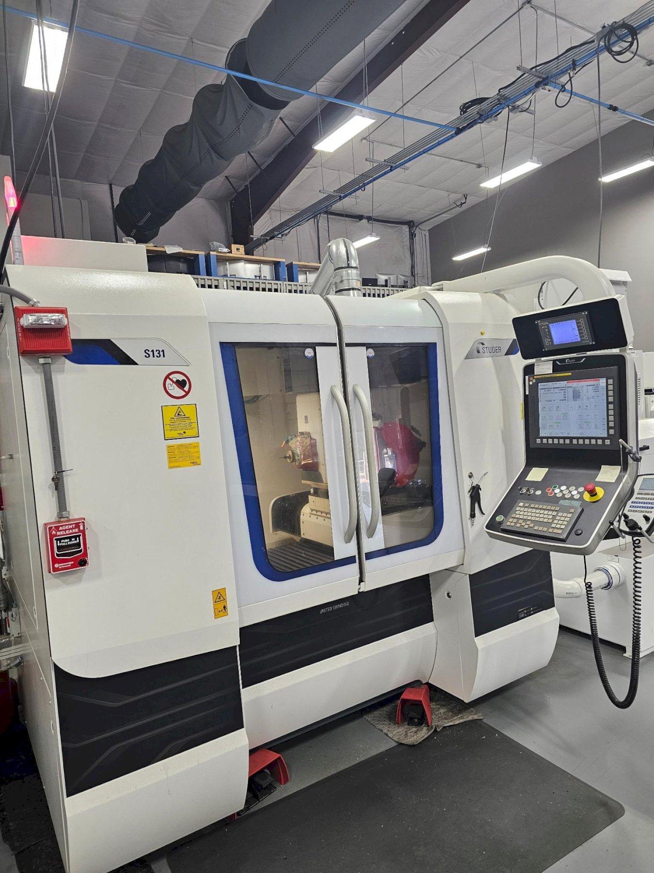 All specifications are assumed to be correct but must be confirmed by the purchasing entity.,Grinding length/diameter, external: 4.7″/6.3″ All specifications are assumed to be correct but must be confirmed by the purchasing entity.,X-Axis Travel: 13.78″ Z-Axis Travel: 15.75″ All specifications are assumed to be correct but must be confirmed by the purchasing entity.,Swiveling range of the workpiece table: -60deg. to +91deg. Swiveling range of tool table with B1-axis: -50deg. to +280deg. All specifications are assumed to be correct but must be confirmed by the purchasing entity.,Internal grinding spindles: 24,000 – 120,000 rpm External grinding wheel, dia. x width x bore: 250 x 25 (F5) x 50 mm (10” x 1” (F 5) x 2”) All specifications are assumed to be correct but must be confirmed by the purchasing entity.,Spindle Arrangement: Turret Number of Spindles: 4 All specifications are assumed to be correct but must be confirmed by the purchasing entity.,Chuck Workhead: High Precision: 1-1200 RPM Standard Version: 1-1500 RPM Spindle Bore: 1.4″ Driving Power: 4 HP All specifications are assumed to be correct but must be confirmed by the purchasing entity.,C-axis for form grinding: Standard, indirect measuring system: 0,0001° All specifications are assumed to be correct but must be confirmed by the purchasing entity.,Machine Weight: 13,000 LBS All specifications are assumed to be correct but must be confirmed by the purchasing entity.,Equipped With: All specifications are assumed to be correct but must be confirmed by the purchasing entity.,Fanuc 31i-Model B Control External Grinding T1 Internal Grinding T2 (60k RPM) Internal Grinding T4 (90K RPM) – T3 with internal grinding attachment for dia. 120mm Internal Grinding T4 (90k) – T4 with internal grinding attachment for dia. 100mm Chuck Workhead MT5/A4 Rotary Dressing Portable operating unit Studer PCU terminal II with graphics RJ45 Ethernet Interface Contact Detection Length Positioning Probe Machine Coolant Equipment & Acc. Foot Pedal TouchControl for diameter Non-round software (c-axis is on machine in the workhead section) United Grinding Digital Solutions/OPC-UA Fire Suppression System Coolant Filter for oil Coolant Filtration System and Mist Collection All specifications are assumed to be correct but must be confirmed by the purchasing entity. |
