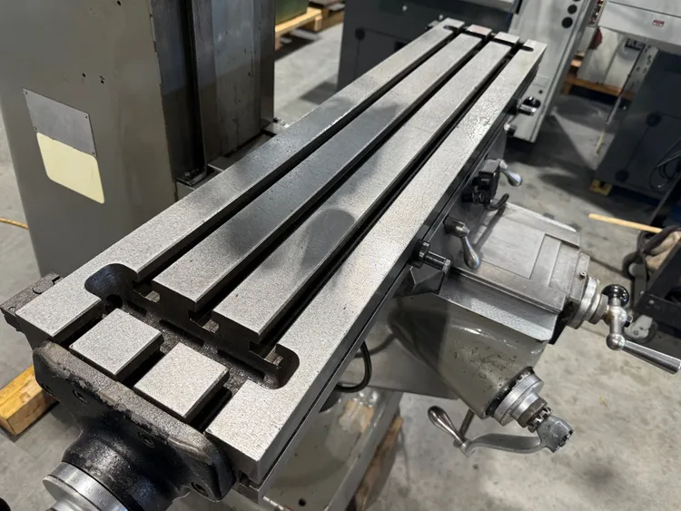 Reference # 7848 Model # Series 1 Serial # 262827 Year of manufacture- 1993’ Table working surface- 9“ x 42” Number of t-slots- 3 Ranges- Longitudinal- 26” Cross- 11.5” Vertical, knee- 16” Quill-5” Maximum/Minimum distance, spindle nose to top of table- 18.5"/2.5" Maximum/Minimum distance, centerline of spindle to face of column- 18.75"/6.75" Ram travel- 12” Head tilt, left & right- 90 degrees Head tilt, front to rear, each way- 45 degrees Turret rotation- 360 degrees (3) Power quill feeds- - .0015, .003, .006 I.P.R. Infinitely variable spindle speeds, two ranges- 60-4,200 R.P.M Spindle taper- R-8 Maximum collet capacity- ¾” |