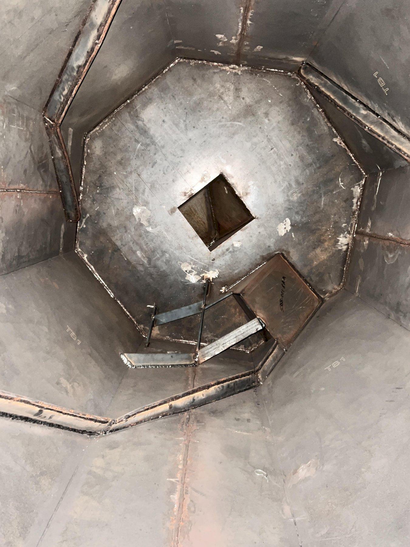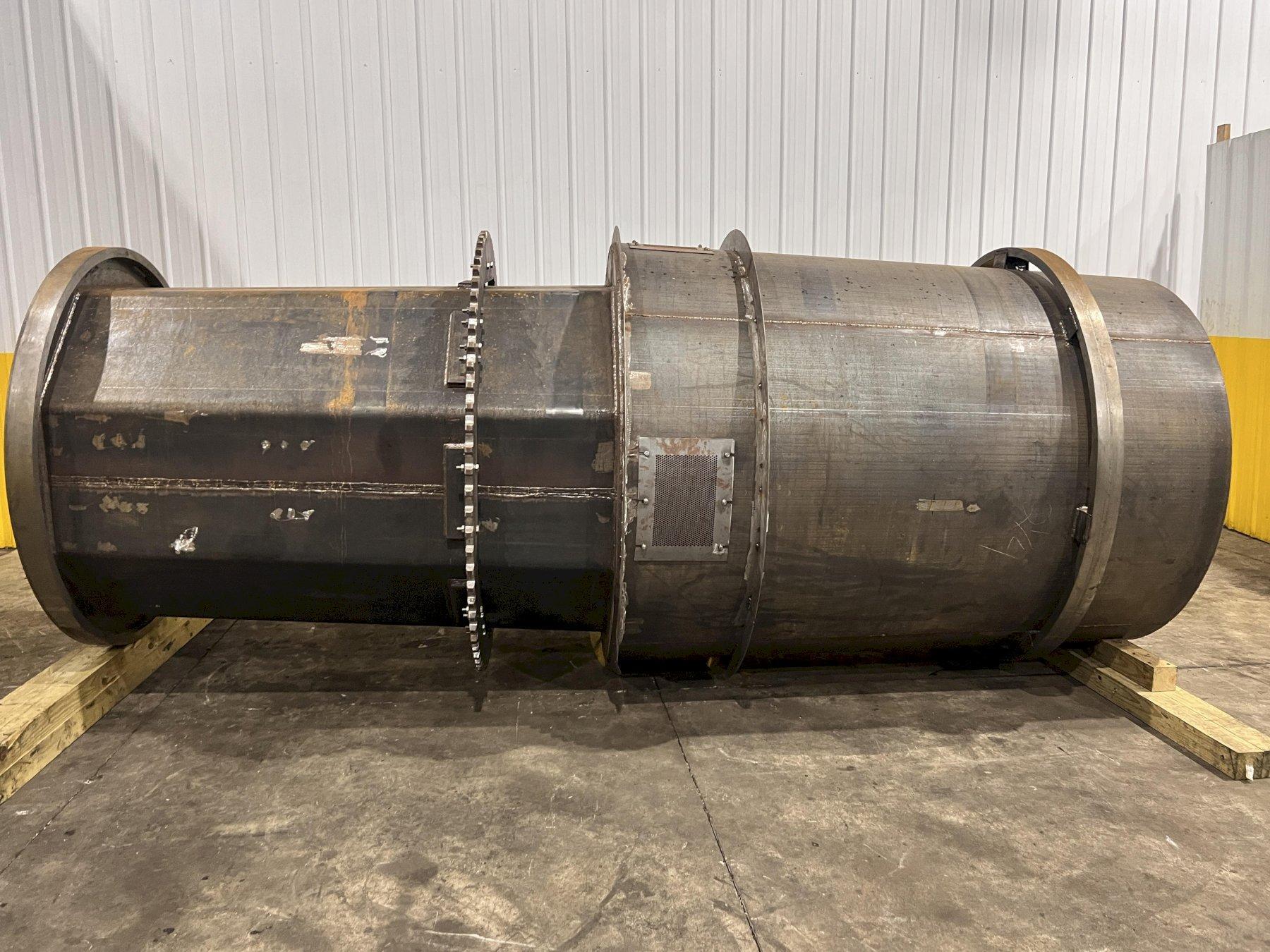 COMPLETE ROTARY DRUM WASHER & RINSE/DRY SYSTEM Parts: Steel Stampings Drum Speed: 7.5 RPM tumbling / 7.5 RPM discharge Production Rate: 170 CFH Maximum Load Capacity: 1,800 lb batch Operating Temperature: Wash Stage: 160°F Rinse Stage: 160°F Heat Source: Electric, 460V Sound Level: 85 dB (drum running empty) MECHANICAL CONSTRUCTION Washer Housing: 12-gauge hot rolled steel Dryer Housing: 14-gauge aluminum Tank Construction: 12-gauge hot rolled steel Frame & Hood: All hot rolled steel Insulation: Washer: 2" fiberglass panels Dryer: 4" fiberglass panels ROTARY BATCH DRUM ASSEMBLY Drum Type: Hexagon Batch Processing Drum Drum Size: 48" diameter x 72" length Material: 3/4" Hot Rolled Steel Drum Head: Integrated discharge chute Retaining Cone: 60" diameter x 80" length, 3/8" HRS Running Bands Load End Running Band: 3-1/4" x 2-3/4" 55-1/4" ID 58" Finished OD Discharge End Running Band: 3-1/2" x 2-3/4" 61-1/4" ID 64" Finished OD Drive Interface Plate Sprocket: #881 Chain 78 Tooth 1" Thick Trunnions (4) Heavy-duty 14" trunnions complete with shafts and bearings INTERNAL FLIGHTS & TUMBLING SYSTEM The batch drum shall include a fully integrated internal tumbling flight system designed to provide controlled part agitation, lift, tumble, and forward conveyance through the wash process. Flight Construction Material: Hot Rolled Steel Flat Bar Flight Size: 1" x 1/4" HRS Flat Bar Configuration: Continuous spiral pattern through wash section Quantity: Multiple spiral flights with lead-in and discharge transition baffles Attachment: Fully welded to drum shell Flight Function Provides uniform tumbling action Controls dwell time Promotes part separation and fluid drainage Prevents part nesting Improves washing and deburring efficiency SEPARATOR SCREEN Separator Screen Size: 24-1/2" x 74" Heavy-duty perforated steel construction Integrated mounting flange at unload end Designed to mate directly to rinse-dryer drum flange Welded structural support ribs Drain baffle system under screen Perforation Pattern Hole Size: 3/4" diameter Pattern: Staggered TANK SYSTEM Wash Tank Capacity: 475 gallons Rinse Tank Capacity: 250 gallons Sloped bottoms, clean-out ports, overflow and drain connections Water level control and overflow outlet HEATING SYSTEM Electric immersion heating system: Wash Tank Heaters: 120 kW Rinse Tank Heaters: 60 kW Rust Prevent Heaters: 36 kW Total Connected Heater Load: 216 kW PUMPING SYSTEM Wash Pump: 20 HP Rinse Pump: 15 HP Rust Prevent Pump: 10 HP Sump Pump: 5 HP Return Pump: 5 HP All pumps skid mounted with motors, couplings, strainers and isolation valves. DRYING & BLOW-OFF SYSTEM (2) 15 HP blow-off blowers (1) 20 HP dryer circulation blower High-velocity air knives Insulated drying tunnel Exhaust outlet and fresh air inlet ELECTRICAL SYSTEM Incoming Power: 460V / 3 Phase / 60 Hz Total Connected Load: 460 kW PLC control system Motor starters and heater contactors Safety interlocks and emergency stops NEMA industrial enclosure DIMENSIONS Overall System Length: Approx. 27 feet Overall Height: 11'-9½" Unload Elevation Width: 5'-0" Unload Elevation Depth: 2'-6" LUBRICATION Centralized lubrication block Drum trunnions, drive system, and blower bearings tied into common lubrication system |