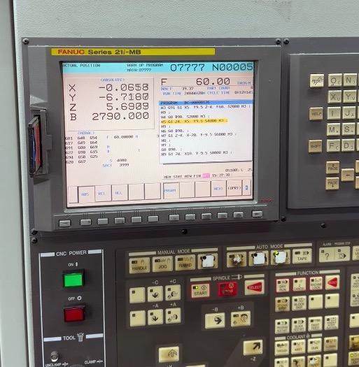All specifications are assumed to be correct but must be confirmed by the purchasing entity.,Spindle Speed: 12,000 RPM Spindle Power: 33.5 HP Spindle Taper: CAT 40 Automatic Tool Changer: 60 Positions Automatic Pallet Changer: 2 Positions All specifications are assumed to be correct but must be confirmed by the purchasing entity.,Rapid Traverse (X/Y/Z): 1,969 in/min Max Workpiece Diameter: 25.6″ Max Workpiece Height: 25.6″ Max Pallet Load: 1,102 lbs All specifications are assumed to be correct but must be confirmed by the purchasing entity.,EQUIPPED WITH: Fanuc Series 21i-MB CNC Control Through Spindle Coolant Rigid Tapping Custom Macro B & Variables (200 each) 33.5 HP Direct Drive Spindle 60 Position Tool Changer Extended Memory Chip Conveyor 2x Pallets All specifications are assumed to be correct but must be confirmed by the purchasing entity.,Spindle rebuild in 2022 All specifications are assumed to be correct but must be confirmed by the purchasing entity. |