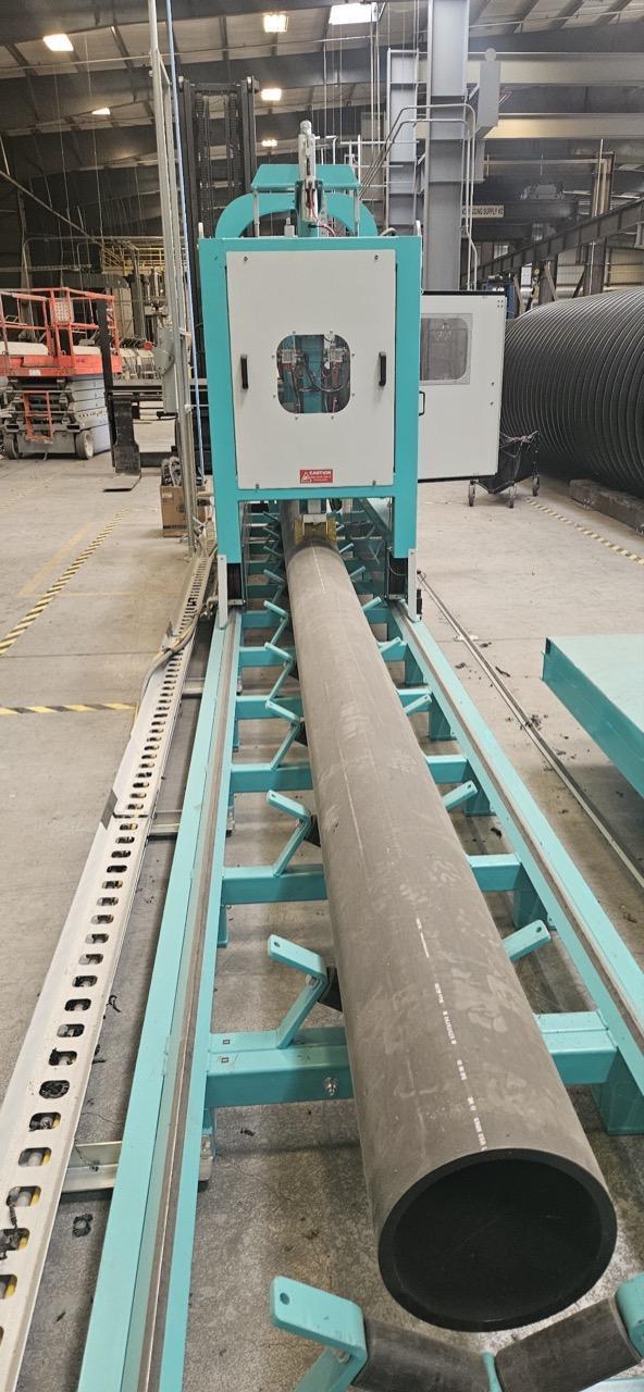 All specifications are assumed to be correct but must be confirmed by the purchasing entity.,Equipped With: All specifications are assumed to be correct but must be confirmed by the purchasing entity.,Air Operated Pipe Indexing System Eight Drill Motor Assembly Variable Frequency Drive For Drill Motors PLC Control With Touchscreen Interface Automatic Pipe Clamping And Indexing Safety Enclosures With Polycarbonate Viewing Windows Cable Track System Between Indexer And Drill Head Pipe Support Track With Nylon Rollers Pipe Cart With Guide Track Assorted Air Cylinders, Valves, Regulators, And Arbors Spare Parts Package All specifications are assumed to be correct but must be confirmed by the purchasing entity. |