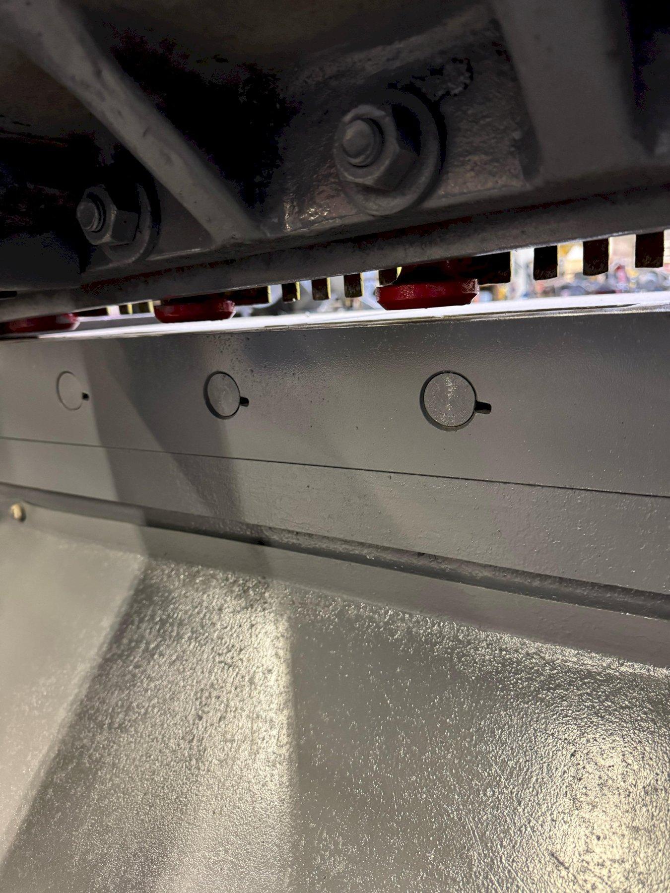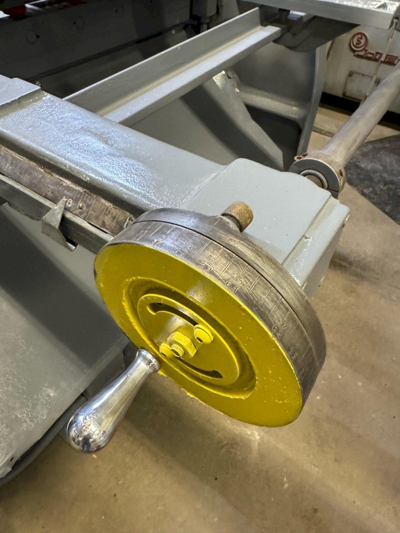 CAPACITY ----------------------- 4 ft X 12 GA.MILD STEEL 4 ft X 14 GA. STAINLESS STEEL LENGTH OF KNIVES --------------- 49.5 in RAKE ANGLE --------------------- .375 in FLOOR TO TOP OF BED ------------ 34 in S.P.M. APPROX: ----------------- 62 WEIGHT APPROX. ----------------- 3640 LBS. OVERALL DIMENSIONS APPROX. 81 in L-R X 53 in F-B X 65 in H E EQUIPPED WITH: MANUAL BACKGAUGE DELIVERY: IMMEDIATE; SUBJECT TO PRIOR SALE |
