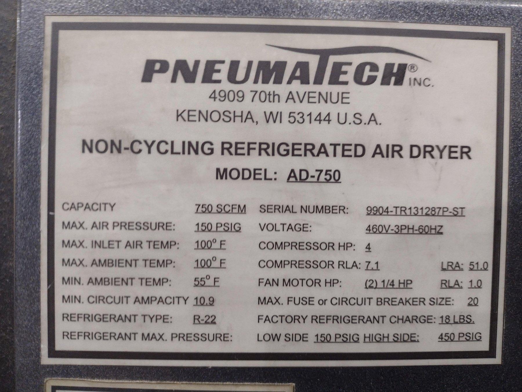PNEUMATECH MODEL #AD-750, NON-CYCLING REFRIGERATED AIR DRYER: YOBRO #24415
