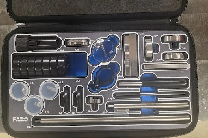 The FARO Vantage S Laser Tracker is a high-accuracy, portable 3D measurement system designed for large-volume metrology and inspection tasks in manufacturing, aerospace, and other precision engineering fields. It offers a working range up to 80 meters, measuring with a resolution of 0.5 μm and an accuracy of 16 μm + 0.8 μm/m, and features rapid data acquisition at 1,000 points per second for real-time feedback. Key advantages include exceptional portability with hot-swappable batteries, fast target location via ActiveSeek, robust wireless connectivity, and a rugged IP52-certified design suitable for harsh industrial environments. Faro Vantage S Tracker 2024 (Used)