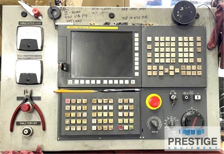 Table Diameter 48" Maximum Swing 60" Ram Stroke 48" Maximum Work Height 60" Table Speeds: (Inf. Variable) 1-350 RPM Spindle Taper #60 Table Indexing, C-Axis .001 degrees Milling Spindle Speeds 15-1500 RPM Milling Spindle Motor 25 HP Equipped With: Fanuc OI-TD CNC CNC Control Vertical Ram with Live Milling C-Axis Table for Milling & Drilling Operations 45-Station Automatic Tool Changer Note: Inspect In Plant Under Power! |