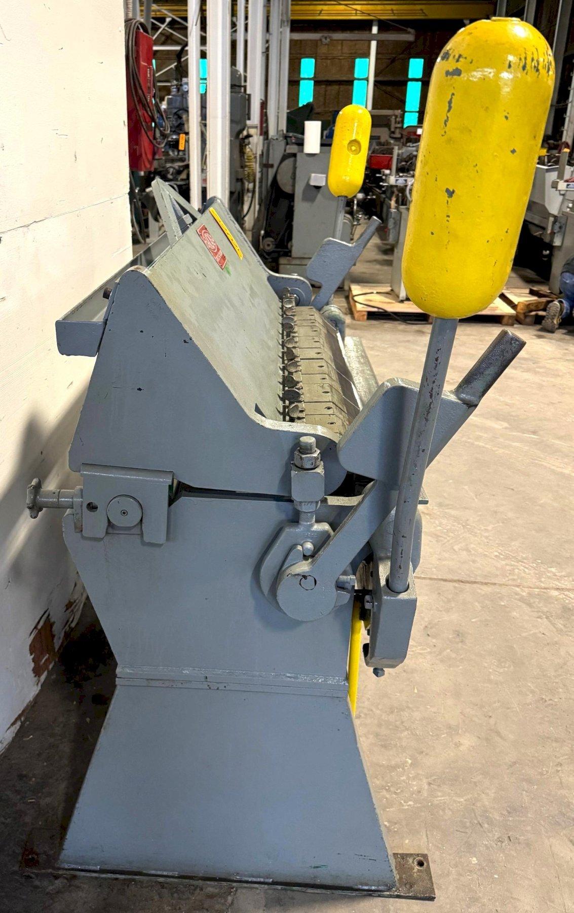 MODEL: BPO412-6 SERIAL NUMBER: 321252 GENERAL SPECIFICATIONS Bending Length: 48" Capacity, Mild Steel: 12 Gauge Capacity, Stainless Steel: 16 Gauge EQUIPPED WITH Complete Set Of Fingers Approximate Weight: 2000 Lbs. F.O.B. Cincinnati, Ohio ALL SPECIFICATIONS SUBJECT TO VERIFICATION BY PURCHASER |