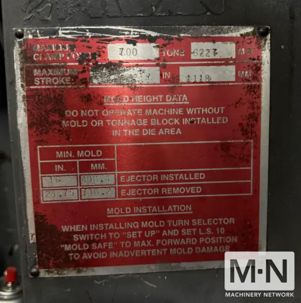 OverviewDescription700 TON 125 OZ VAN DORN MODEL 700HP125F INJECTION MOLDING MACHINE MFG 1996 CLAMP STROKE: 44"