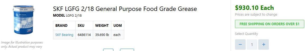 MODEL ................. LGFP 2-18 MAKE .................. SKF FOOD COMPATIBLE ....... YES NUMBER OF BUCKETS ..... 6 (3 PER BOX) BUCKET SIZE ........... 5 GALLON NEW COST PER BUCKET ... $700-900 PER BUCKET BUY IT NOW FOR ........ $1,950 FOR 6 BUCKETS! |
