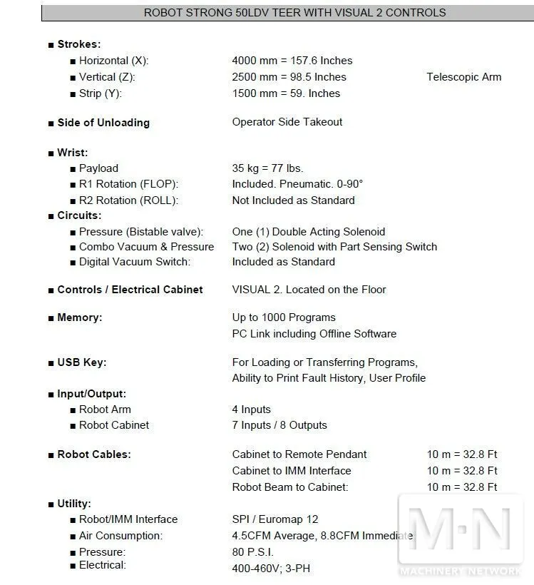OverviewDescriptionSEPRO ROBOT MODEL STRONG 50LVD SERVO ROBOT MFG 2022 VISUAL 2 CONTROLS
