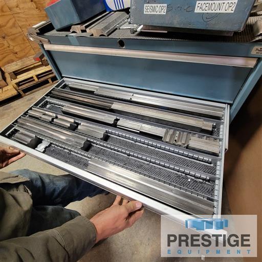 Tonnage Capacity 55 Tons Overall Length Of Bed 100.39" Distance Between Housings 80.70" Stroke Length 4.72" Motor 10 HP Approximate Dimensions 110.62" x 51" x 86" Approximate Shipping Weight 7,583 Lbs Equipped With: Delem DA-65 CNC Control 2-Axis Ram 6-Axis Back Gauge Front Support Arms Electric Foot and Palm Button Controls 460 Volt Tooling |