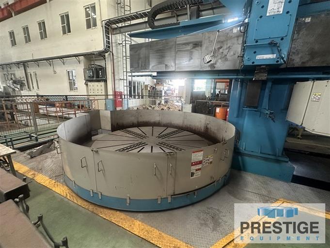 Table Diameter 118.11" Max Turning Diameter 216.53" Max Swing 220.47" Max Turning Height 102.36" Max Height Under Rail 112.98" Table Capacity 66,138 Lbs Column Infeed 49.21" Ram Stroke 49.21" Horizontal Travel Of Ram 78.74" Ram Cross Section 8.25" x 8.25" Table Speeds (16 Steps) .8-80 RPM Approximate Machine Weight 92,400 lbs Equipped With: Fanuc 18i-TB CNC Controls 16-Station Automatic Tool Changer |