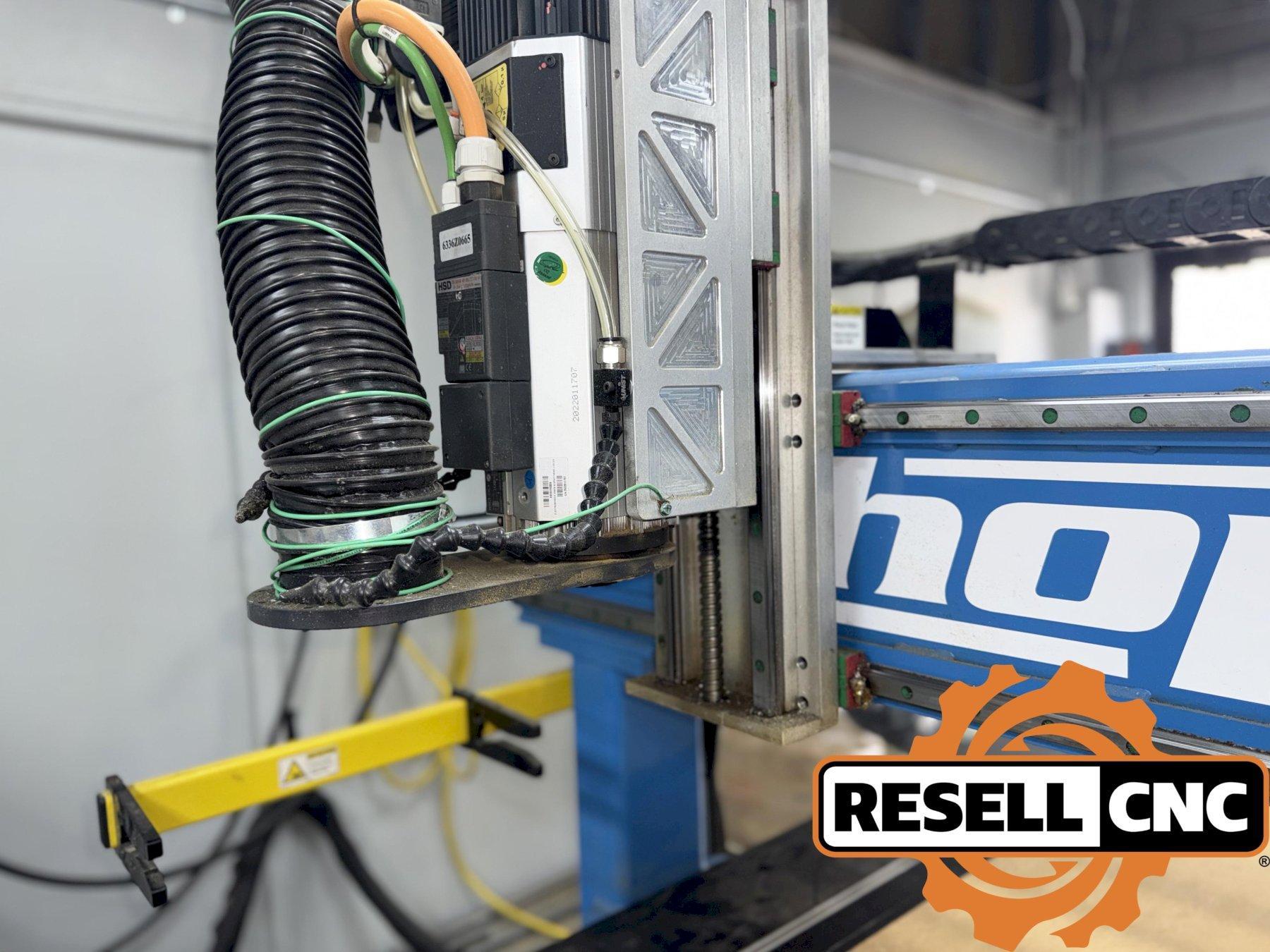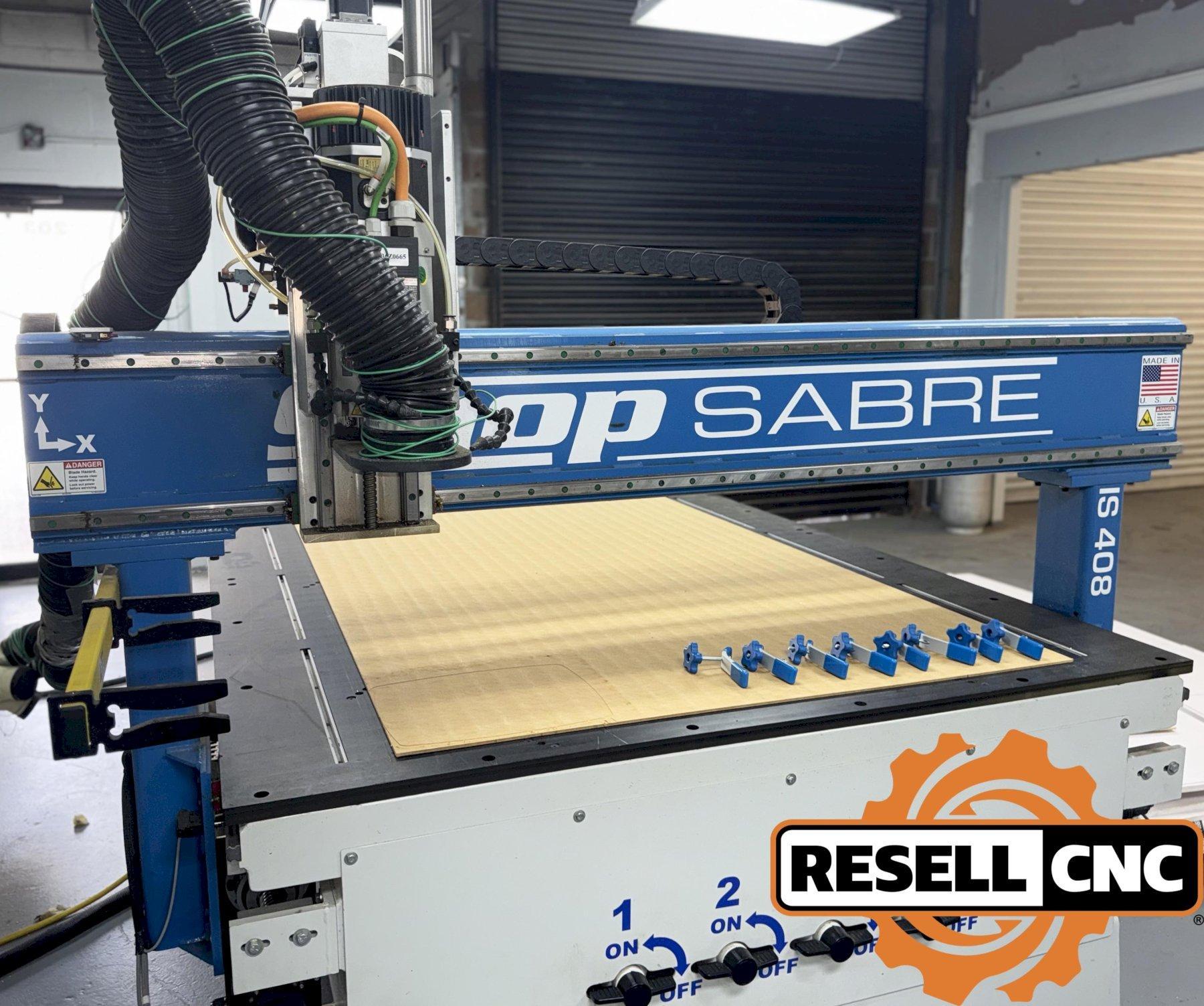 AC Servo Motors Drive System: Ball Screw X, Dual Y, & Z Axis Shop Sabre Windows Based Control Becker VTLF 2.250/0-79 Vacuum Pump Shop Fox Dual Bag Dust Collection System Mitsubishi Phase Converter HSD Router Spindle Head 4 Suction Zone Control Spare Clamps (14) Toolholders |