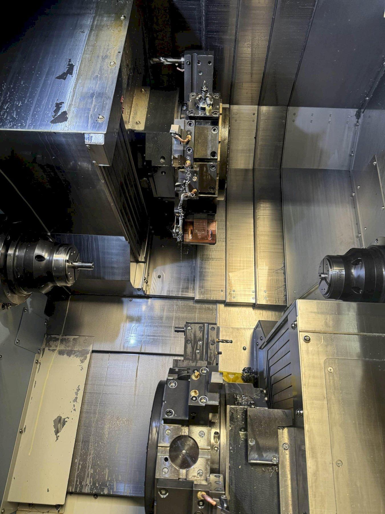All specifications are assumed to be correct but must be confirmed by the purchasing entity.,Equipped With: All specifications are assumed to be correct but must be confirmed by the purchasing entity.,Fanuc 31i-B Control High Pressure Coolant Chip Conveyor Sub Spindle Bar Feeder Live Tooling Y Axis Capability on Upper Turret Royal Quick Change Collet Chucks on both Spindles Tool Presetter Parts Catcher (Having issues) All specifications are assumed to be correct but must be confirmed by the purchasing entity. |