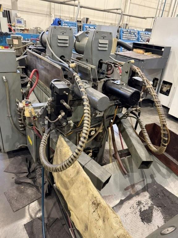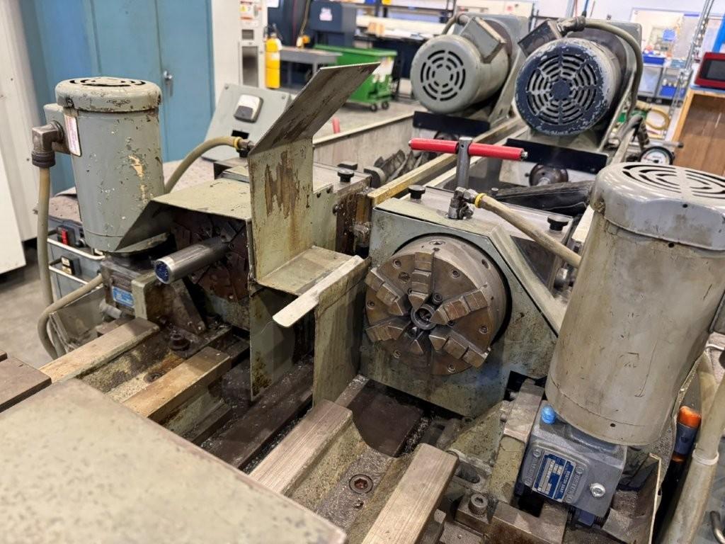Motor-Driven With 3 HP, 3 Phase, 60 Cycle, 460 Volt Spindle Drives with Automatic Direct. 7.5 HP, 3 Phase, 60 Cycle Coolant System. ¼ HP Counter Rotation Motors, Complete Electrical Controls. 1 HP DC Servo Feed Motors. Independent Controls for Each Spindle. (2) Tailstock Counter Rotation Spindles with Pneumatic Activation. (2) 6” 6-Jaw Chucks. (2) T-Slotted 12” x 14” Slide Table with 3” Stroke with Air Motor Positioning and Push Button Controls. End Work Supports. Flo-Minder Coolant Pressure Sensors. Eldorado F18 High-Pressure Coolant System with Filtration and Heat Exchanger. (2) Chip Boxes. Misc Tooling. |