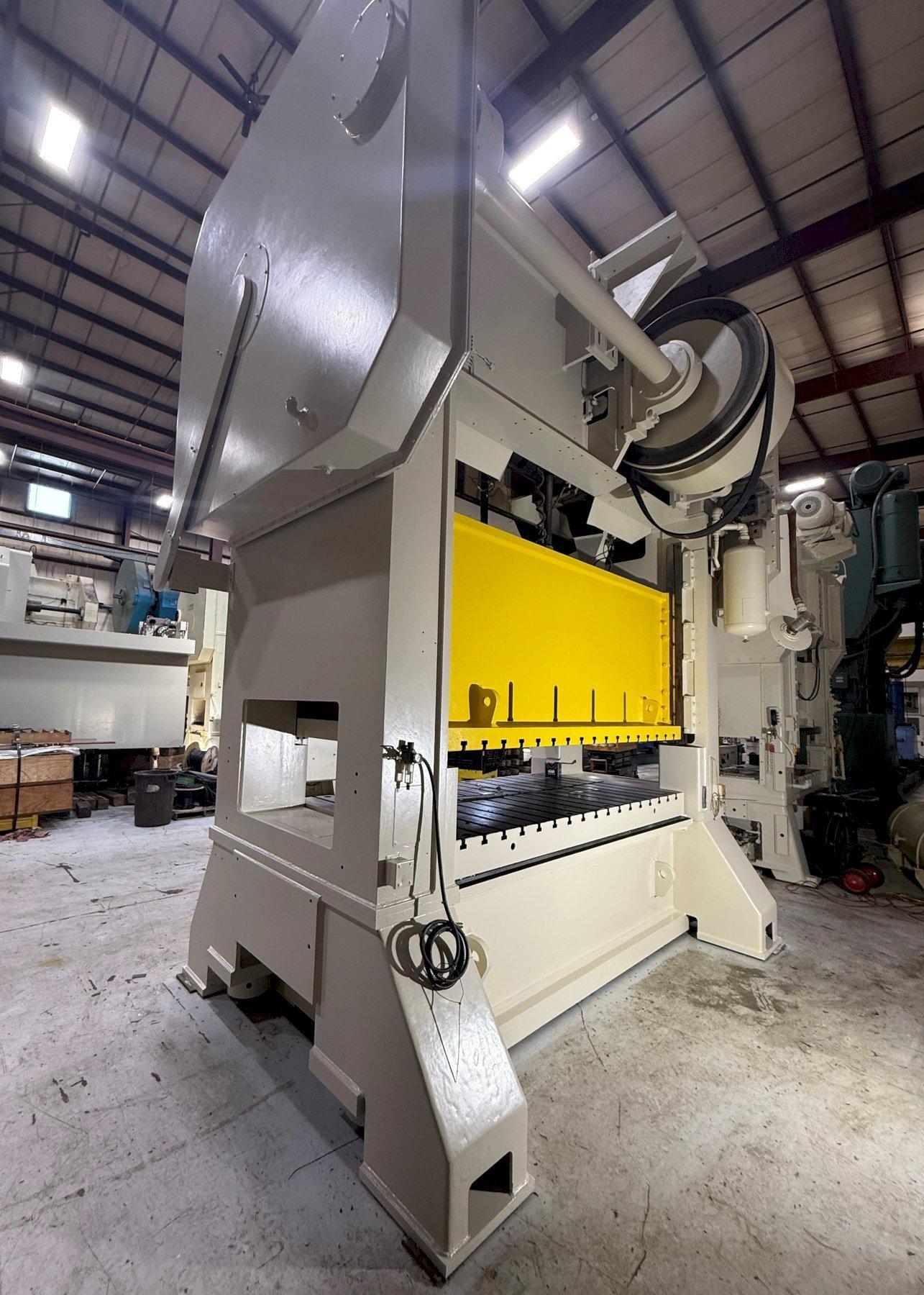 Used Blow Straight Side Mechanical Press 400-ton Blow Model # SC2-400-108-54 Serial Number SDG-400-443-97 400-ton Capacity @ .5" off Bottom 10" Stroke 35" Shut Height over Bed (SDAU) 28" Die Height over Bolster (SDAU) 10" Motorized Adjustment 108" LR x 54" FB Bed Area 108" LR x 54" FB Slide Area 20-60 VSPM Equipment and Features Air Clutch and Brake Air Counterbalances Recirculating Lube System T-Slotted Ram and Bolster 7" Thick Bolster Plate Hydraulic Tie Rod Nuts Omni-Link II LCD Operator Terminal Free Standing Console Controls 38" Wide Windows Vibro Dynamic Isolator Pads Floor Standing Weight: 148,000 lbs. Overall Height: 221.5" Tall This Used 400-ton Blow Press can be seen under power upon request in the S & G Press Livonia MI Warehouse! Premium Used 400-Ton BLOW Straight Side Press for Sale The core advantage of this machine is its massive work area and robust construction. The 108" LR x 54" FB Bed and Slide Area accommodates oversized tooling and complex, multi-stage progressive dies, making it perfect for industries like automotive component production. Advanced Features for Modern Operation This used mechanical press is equipped with features that ensure high efficiency and control. It includes a responsive Air Clutch and Brake system, Air Counterbalances, and a modern Omni-Link II LCD Operator Terminal housed in a free-standing console. The structural integrity is enhanced by Hydraulic Tie Rod Nuts, a 7" Thick Bolster Plate, and Vibro Dynamic Isolator Pads, guaranteeing stable performance even at maximum tonnage. The press is available for immediate inspection and can be seen under power at the S & G Press Livonia, MI Warehouse. This is an exceptional opportunity to acquire a versatile, high-tonnage straight side press ready for integration into your production line. Contact us to request a quote for this reliable 400-Ton BLOW Stamping Press today!Click for more 400-ton Press OptionsUsed 400-ton Straight Side Mechanical Metal Stamping Press For Sale, Used Press, Blow Press For Sale. https://sandgpress.blogspot.com/2025/10/dominate-production-400-ton-blow.html |
