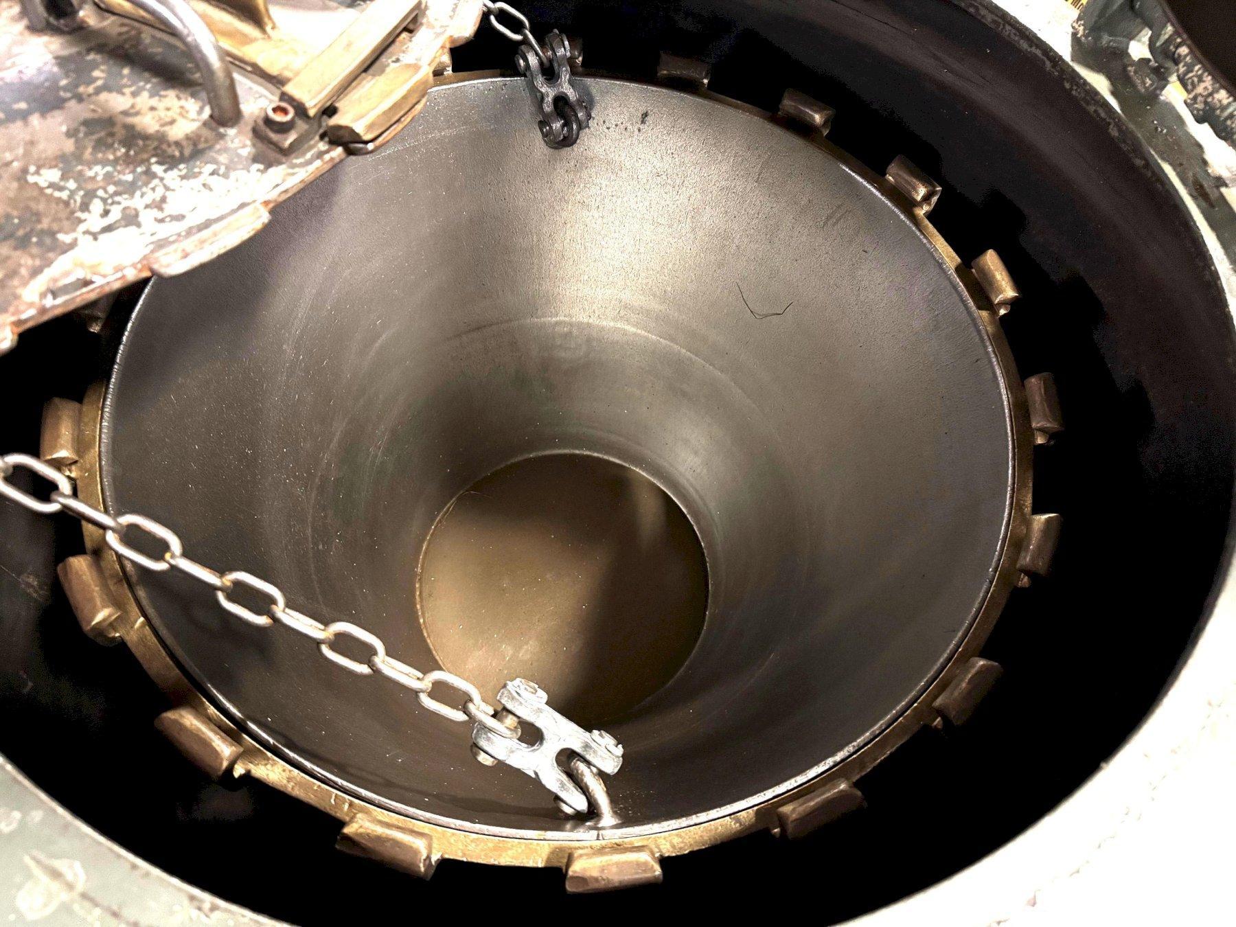 MODEL: 402 SERIAL NUMBER: 402556-E GENERAL SPECIFICATIONS Pan Diameter: 23" Pan Depth: 15" Pan Capacity: 2.1 Cu. Ft. Maximum Allowable Load: 225 Lbs. Running Speed: 1200 RPM Diameter Of Base Of Machine: 42" Approximate Weight: 1750 Lbs. Machine runs as it should. Could use a little TLC. One brass handle needs repaired. Please see photos. F.O.B. Cincinnati, Ohio ALL SPECIFICATIONS SUBJECT TO VERIFICATION BY PURCHASER |