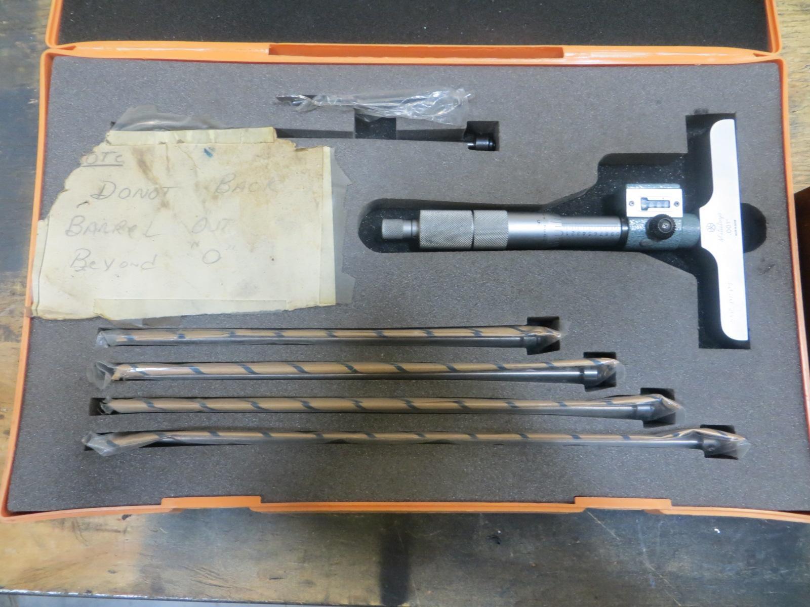 Lot 84: Depth Bore Gauge (2), 1 Mitutoyo and 1 Allina Equipped With: .001" Manufacturer: Generic Model: Generic Main Unit Approx Weight: 0.00 lbs Main Unit Dimensions (in inches): Length: 0.00" Width: 0.00" Height: 0.00" Seller Company: Nilfisk Inc Seller Contact: Machinesused.com NilfiskAuction Phone: (763) 745-1166 Item Location: Nilfisk Inc, 9435 Winnetka Ave N , Brooklyn Park, MN 55445 Location Contact: Machinesused.com NilfiskAuction Phone: (763) 745-1166 Inspection Date & Time: Friday, November 7, 2025 9AM-4PM Dock Door: 12' x 14' Ground Level Door Removal Dates and Times: This item must be removed between Monday, November 17, 2025 and Wednesday, November 19, 2025
