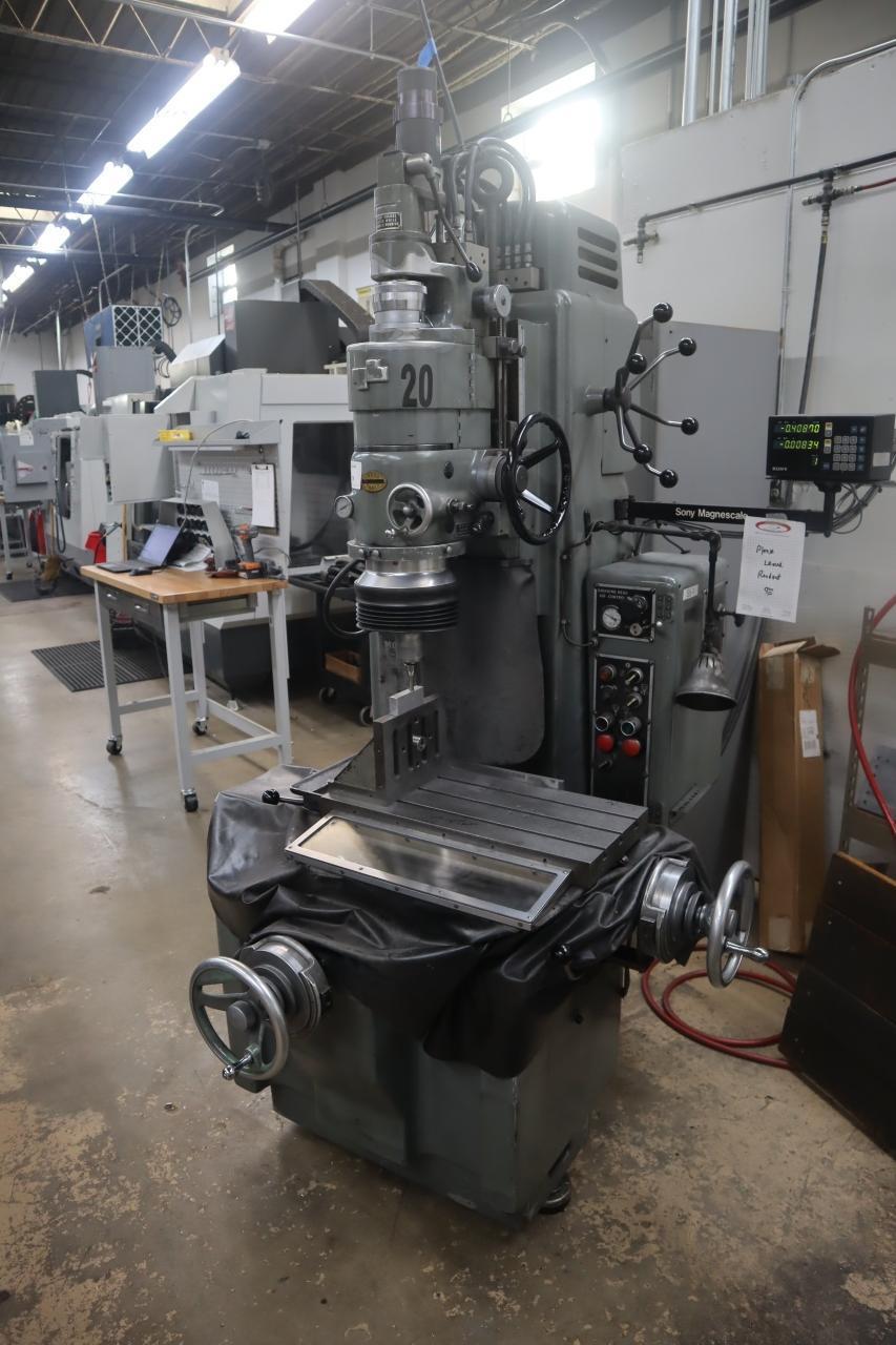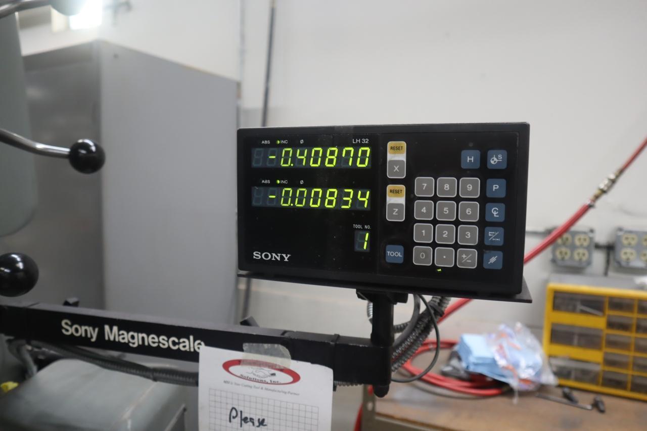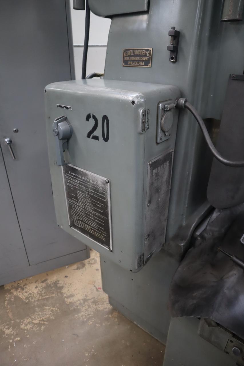 Lot 25: Moore #3 Model G-18 Jig Grinder with Sony 2-Axis DRO Equipped With: Sony 2-Axis Digital Readout (LH32-2), 2 Extra Jig Grinding Heads, Manuals Electrics: 220 Volt, Single Phase Manufacturer: Moore Model: G18 #3 Serial Number: G-2194 Main Unit Approx Weight: 4000.00 lbs Main Unit Dimensions (in inches): Length: 53.00" Width: 64.00" Height: 93.00" Specs: Table Size: 11" x 24" Table Travel: 11" x 18" Distance Table to Wheel Collet: 2" - 18" Distance Spindle to Column: 13.5" Sliding Head Travel: 12-5/8" Max Head Travel Grinding Capacity: 1/64" - 3.5" Diameter Angular Adjustment of Spindle: +/- .15 Degree Spindle Speed Capacities: 6,000 - 175,000 RPM with Optional Grinding Heads Spindle Feed Rates: 2 - 210 Cycles Per Minute (Variable) Spindle Travel: 3-5/8" Max Seller Company: Superior Machine, Inc. Seller Contact: Machinesused.com SuperiorAuction Phone: (763) 745-1166 Item Location: Superior Machine, Inc., 3501 Raleigh Avenue, St Louis Park, MN 55416 Location Contact: Machinesused.com SuperiorAuction Phone: (763) 745-1166 Inspection Date & Time: Thursday-Friday, November 13-14, 2025 8AM to 4PM Dock Door: 12' x 12' Ground Level Door Removal Dates and Times: This item must be removed between Monday, December 1, 2025 and Thursday, December 4, 2025